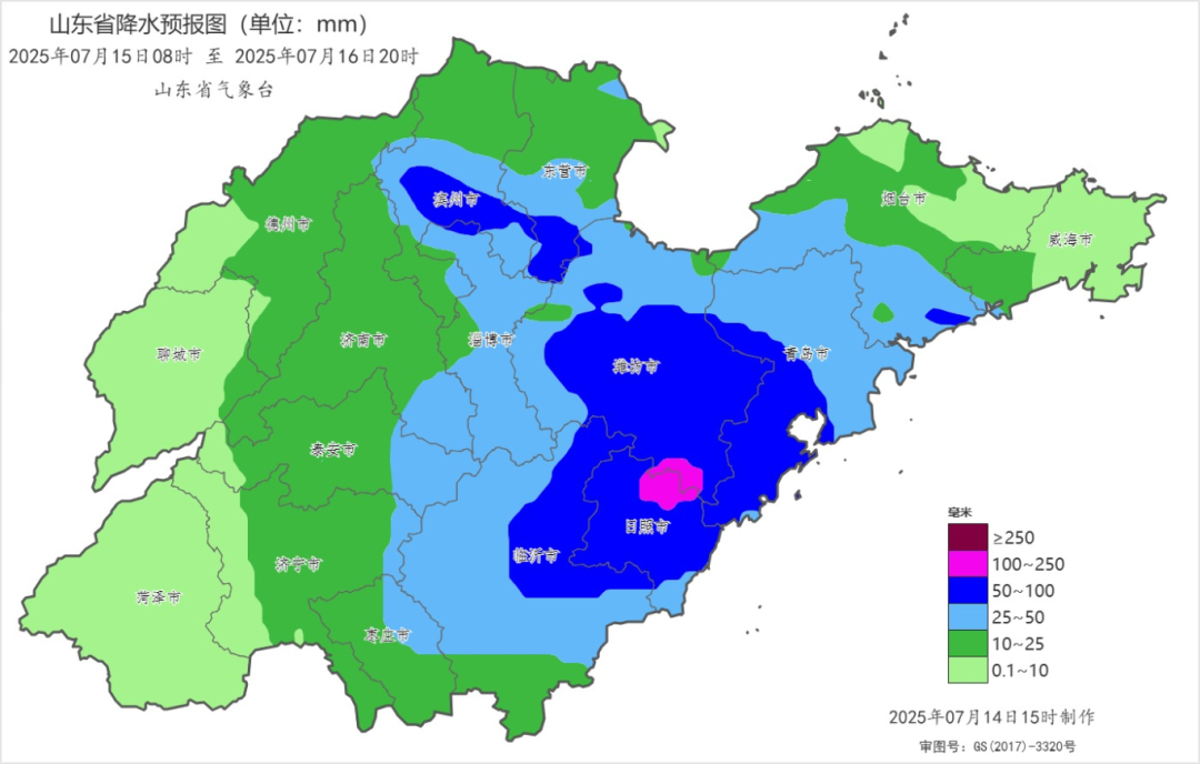 (青岛市气象台2025年7月14日16时30分发布)