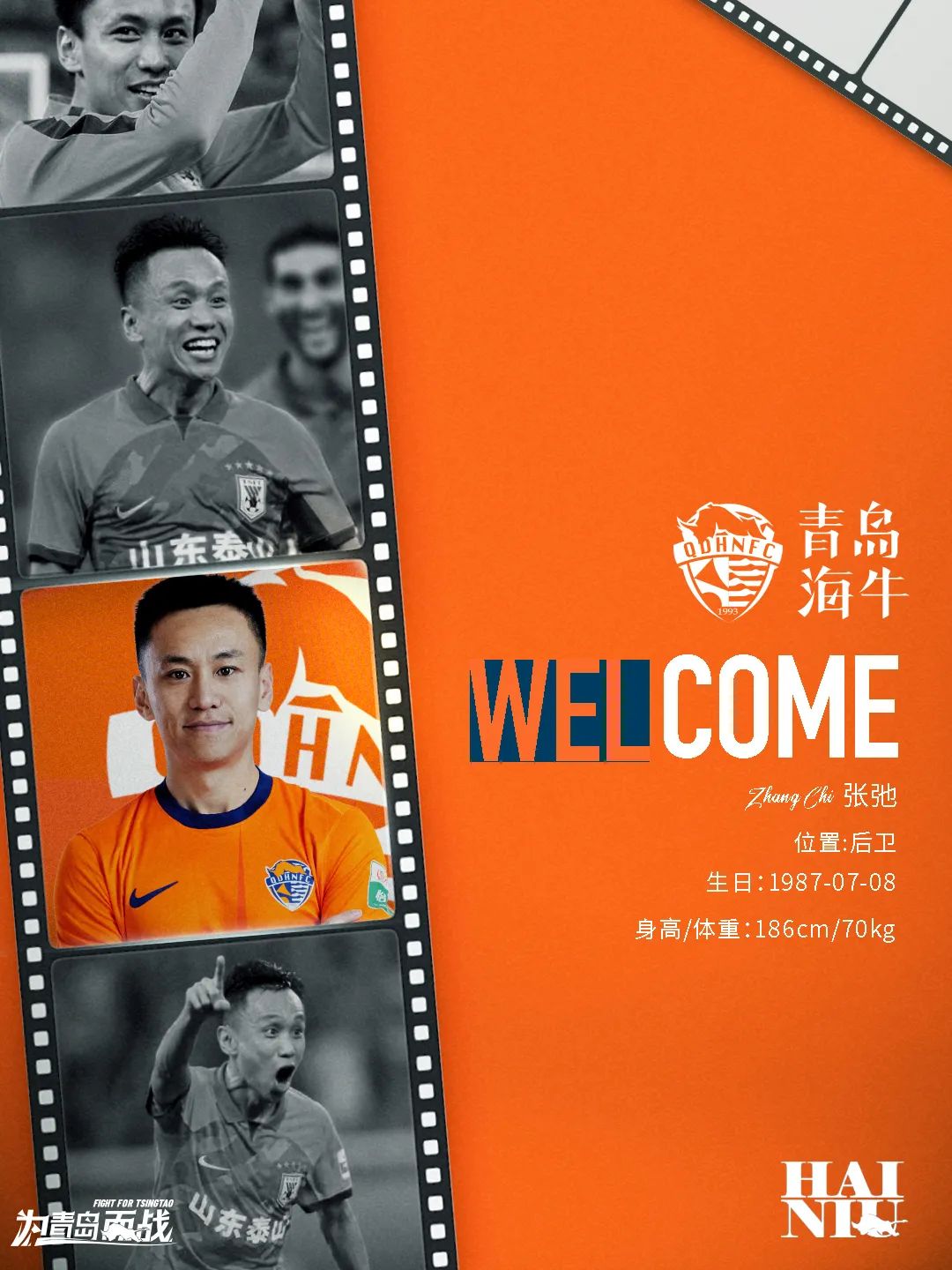 资料显示,张弛出生于1987年7月8日,司职边后卫,职业生涯长期效力于山东泰山队,随队多次夺得中超联赛、足协杯冠军,拥有极其丰富的比赛经验和出色的职业素养。张弛技术特点鲜明,攻防兼备,且具备极强的拼搏精神,相信他的加入将提升青岛海牛边路的速度和质量。期待张弛快速融入队伍,在接下来的比赛中拥有出色的发挥,帮助海牛完成赛季目标。