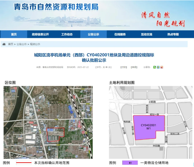 ●7月22日,青岛市自然资源和规划局网站发布了“城阳区流亭机场单元(西部)CY0402001地块及周边道路控规指标确认批前公示”和“城阳区城阳街道CY1202098、CY1103064地块控规指标批前公示”,流亭机场区域有新动态。详情>>>