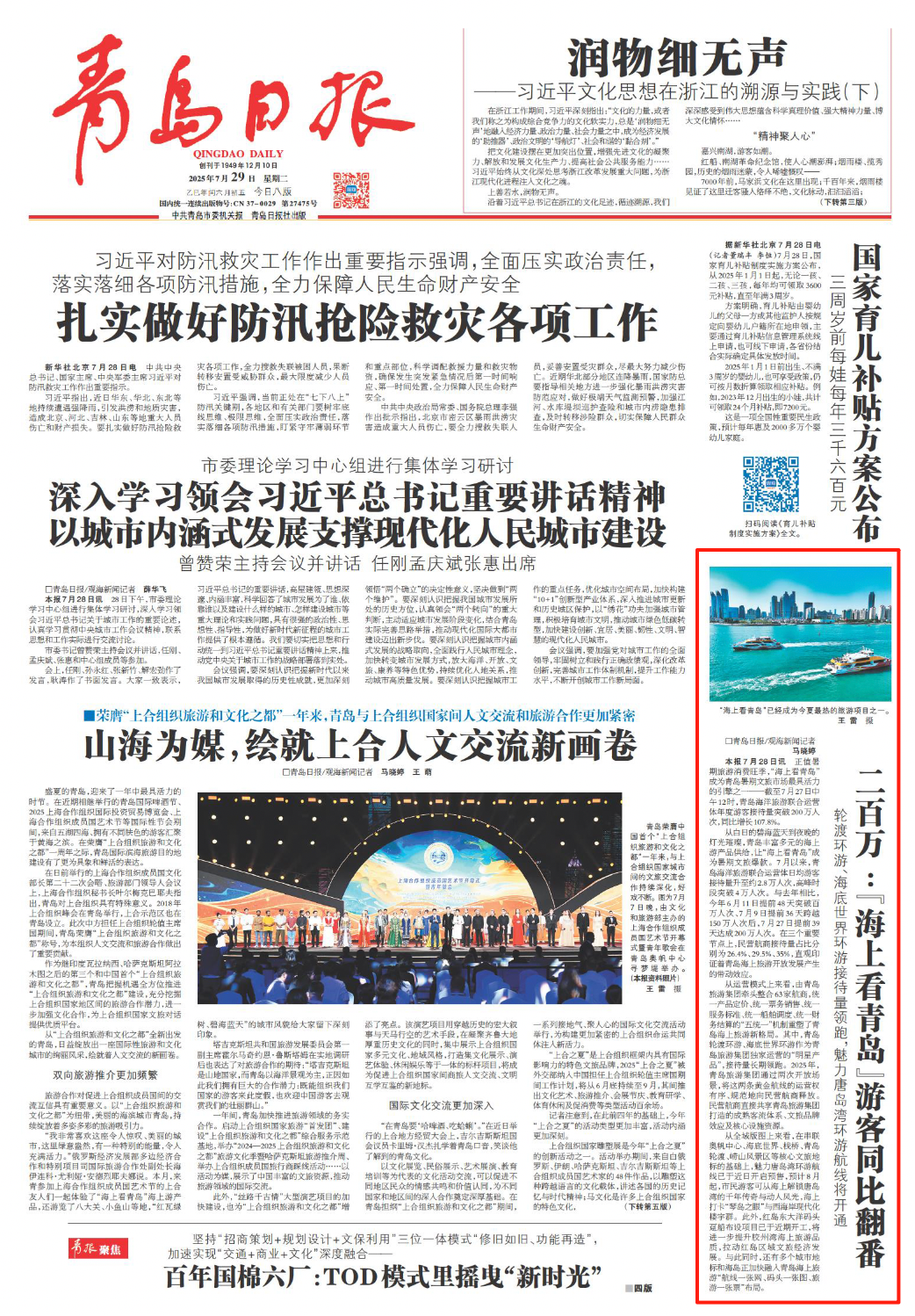 青岛日报社/观海新闻讯 正值暑期旅游消费旺季,“海上看青岛”成为青岛暑期文旅市场最具活力的引擎之一——截至7月27日中午12时,青岛海洋旅游联合运营体年度游客接待量突破200万人次,同比增长107.8%。