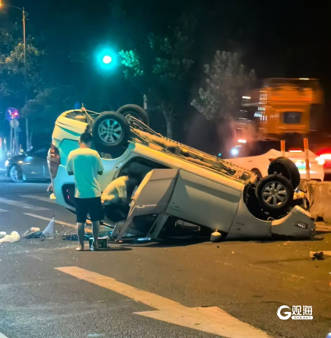 夜间路遇面包车侧翻困人,一家三口现场上演“硬核救援”