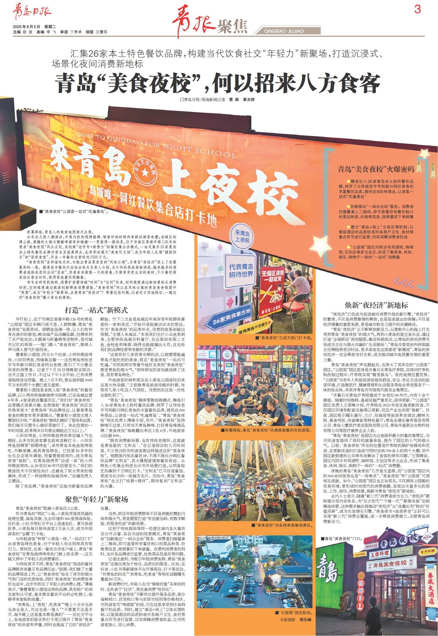 “来青岛,上‘夜校’,吃美食”“晚上十点半乌泱乌泱全是人,外边也是一堆人”“不管夏天还是冬天,每天晚上这里基本都是满的”……在社交平台上,各地游客的留言和打卡笔记提升了青岛“美食夜校”的热度和声量,同时也推高了它的“夜经济”容量。