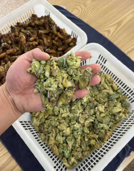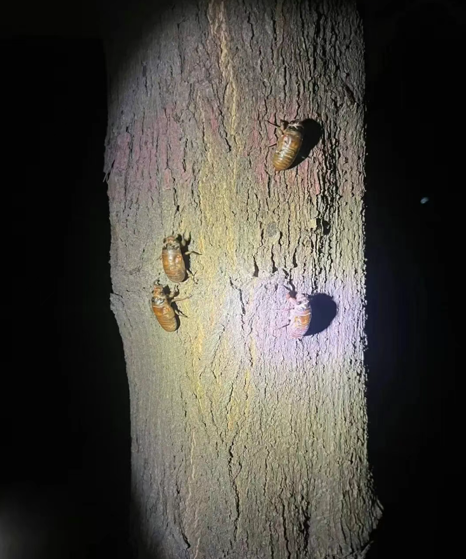 据天天介绍,最近每晚7点多,他和对象会一起到郊区的树林里抓知了猴