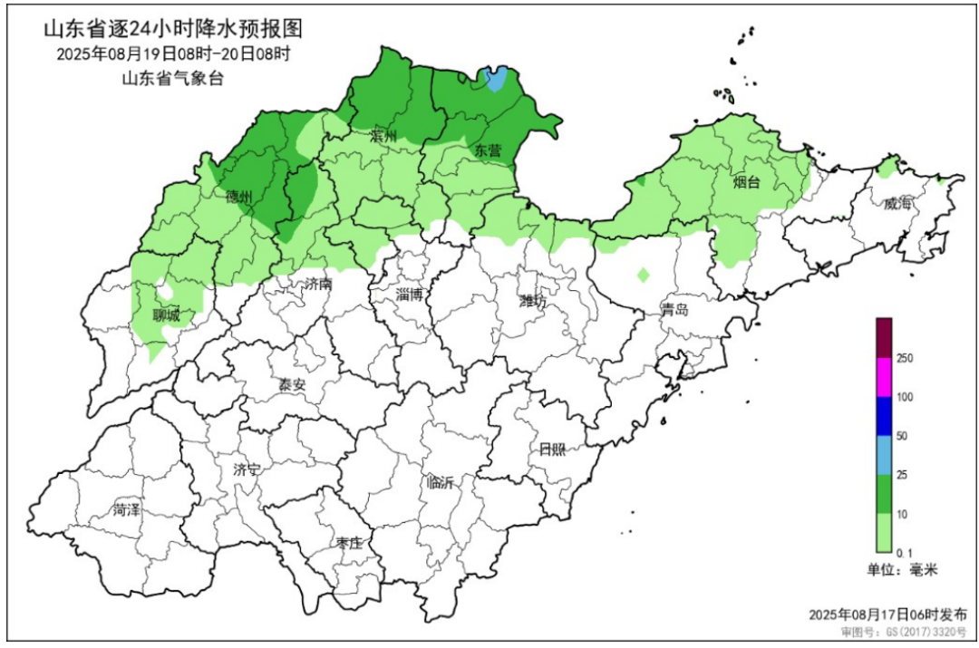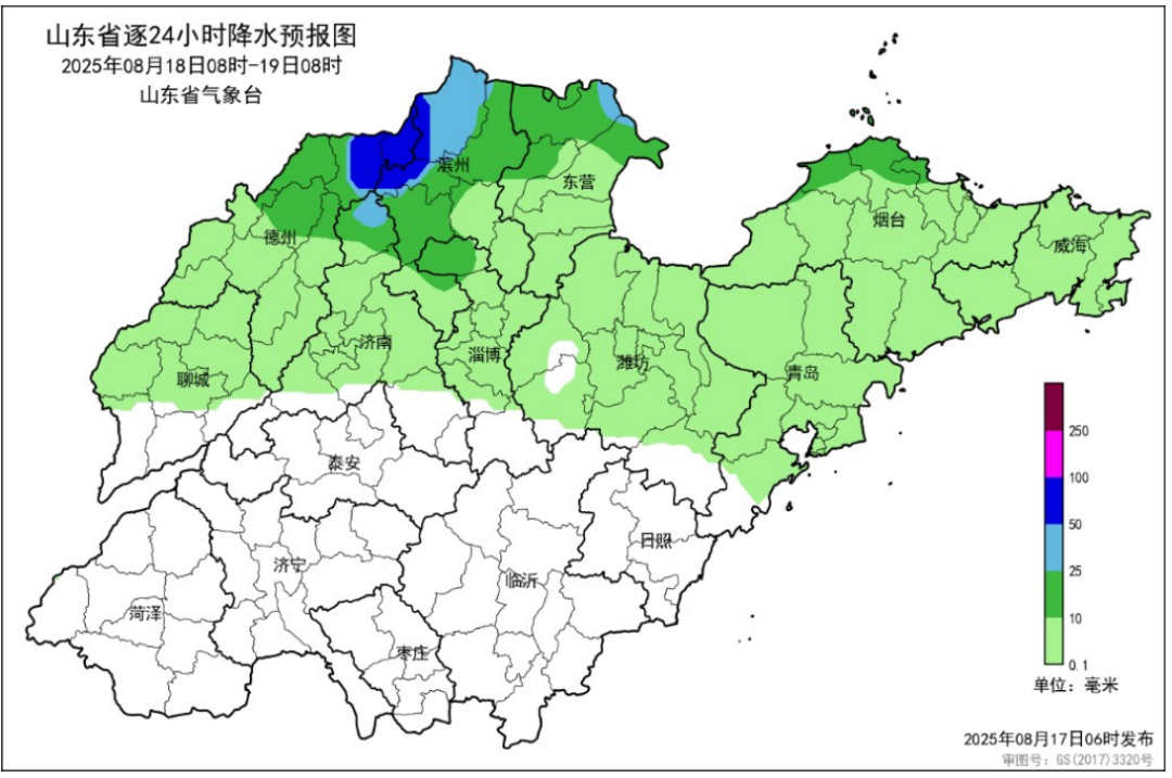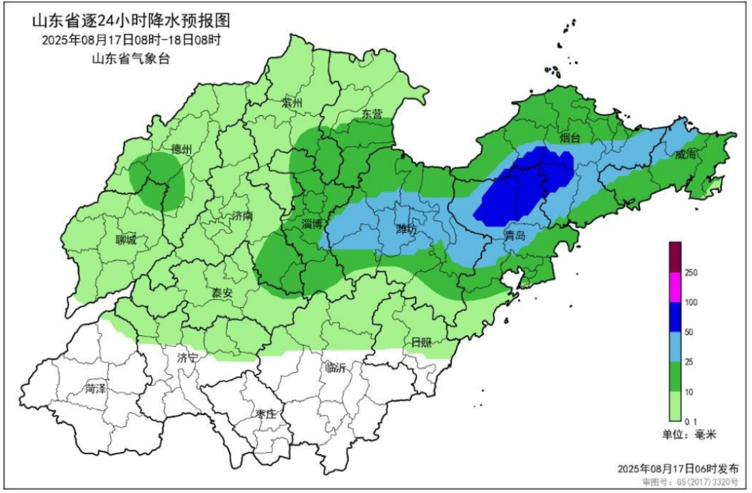 山东省气象台于8月17日6时00分发布未来三天天气预报: