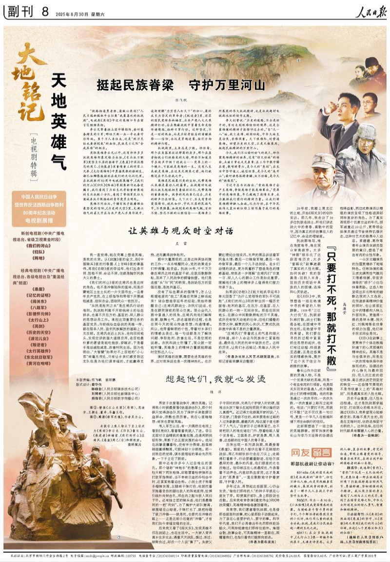 8月30日,演员杨洋等在人民日报撰文。其中,北京人民艺术剧院演员王雷经采访整理撰文《让英雄与观众时空对话》,一级编剧高满堂撰文《“只要打不死,那就打不散”》,青年演员杨洋撰文《想起他们,我就心发烫》。