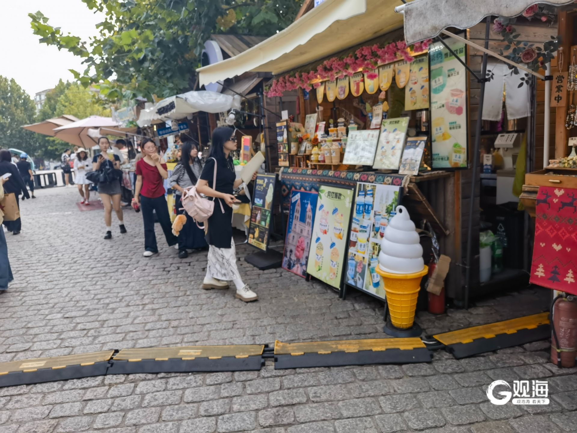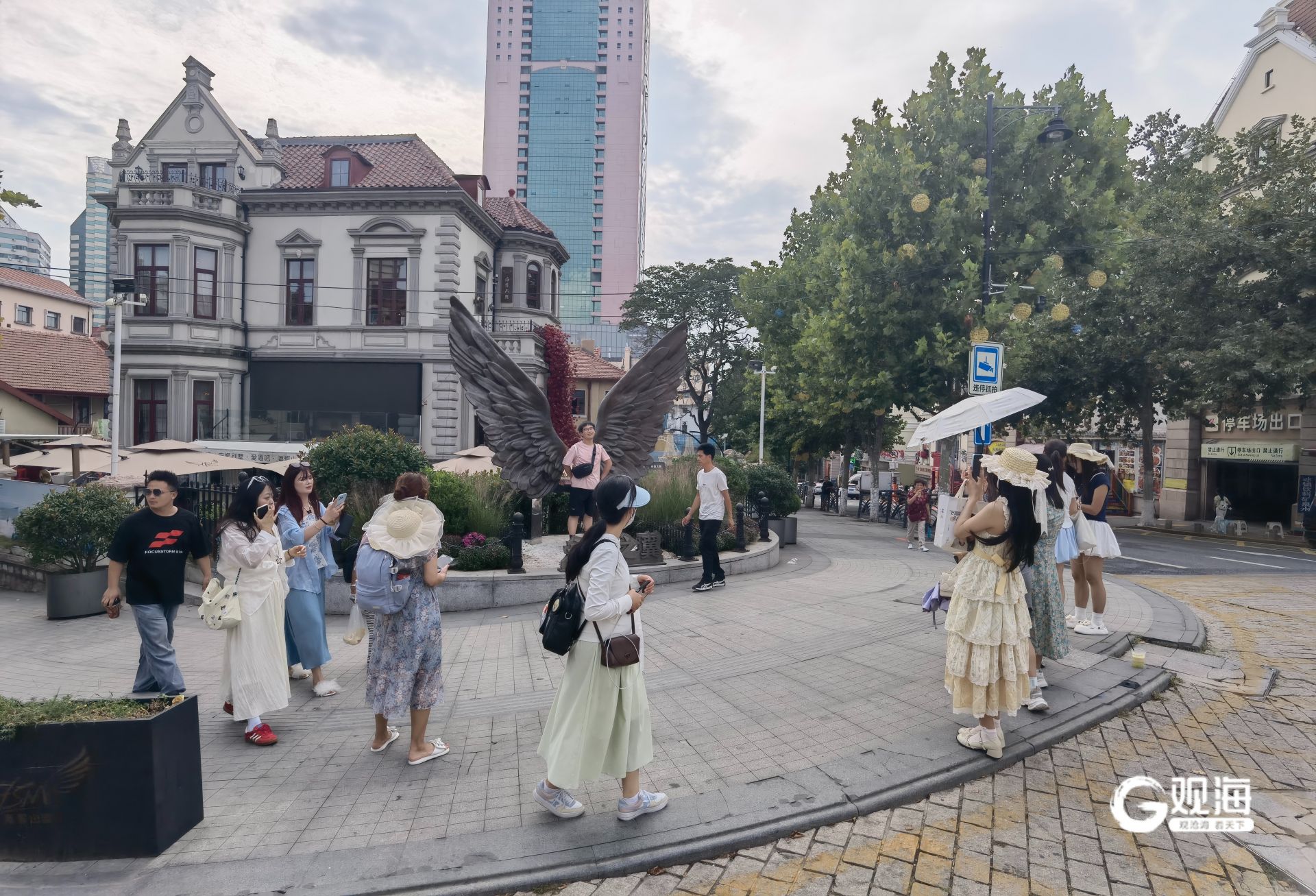 16日下午。雨后初晴,青岛上街里历史文化街区迎来如织游人。湿润的青石板路映照着百年欧式建筑,游客们撑伞漫步,或驻足拍照,或品味咖啡,沉浸于老城的独特韵味。沿街店铺人气旺盛,创意市集与艺术展览吸引众多年轻人打卡。(青岛日报/观海新闻记者 王雷 文/图) 责任编辑:张慕鑫 0