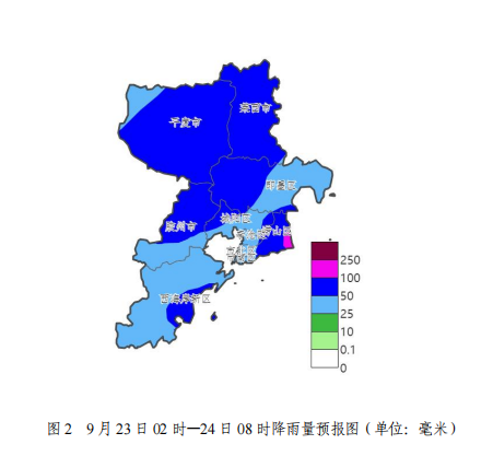 青岛日报社/观海新闻9月22日讯 9月22日下午,青岛市气象局发布最新气象信息,预计23日凌晨到夜间我市有大雨局部有暴雨,崂山山区局部有大暴雨,并伴有雷电、短时强降水和7~9级雷雨大风。