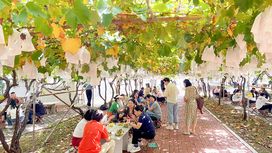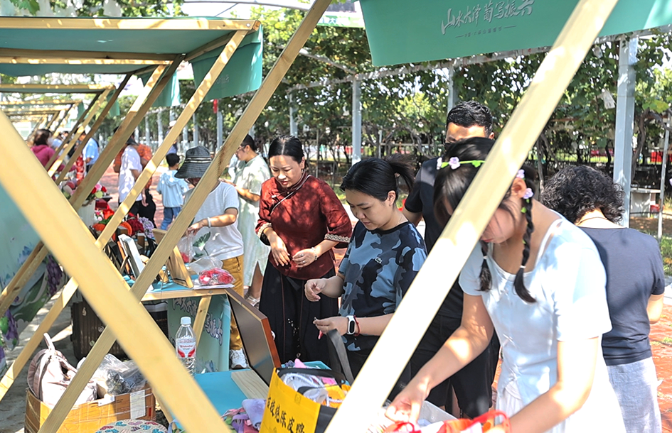 青岛日报社/观海新闻9月25日讯 近日,一场集展示、销售、互动于一体的非遗展销活动在大泽山镇葡萄大观园拉开帷幕。此次活动为大泽山葡萄节系列活动的延伸,通过精心打造的沉浸式“非遗活态长廊”,以“展、销、做、学”无缝融合模式,让游客在游览中实现“一步一景、一架一韵,可观、可购、可动手”的完整非遗体验旅程。
