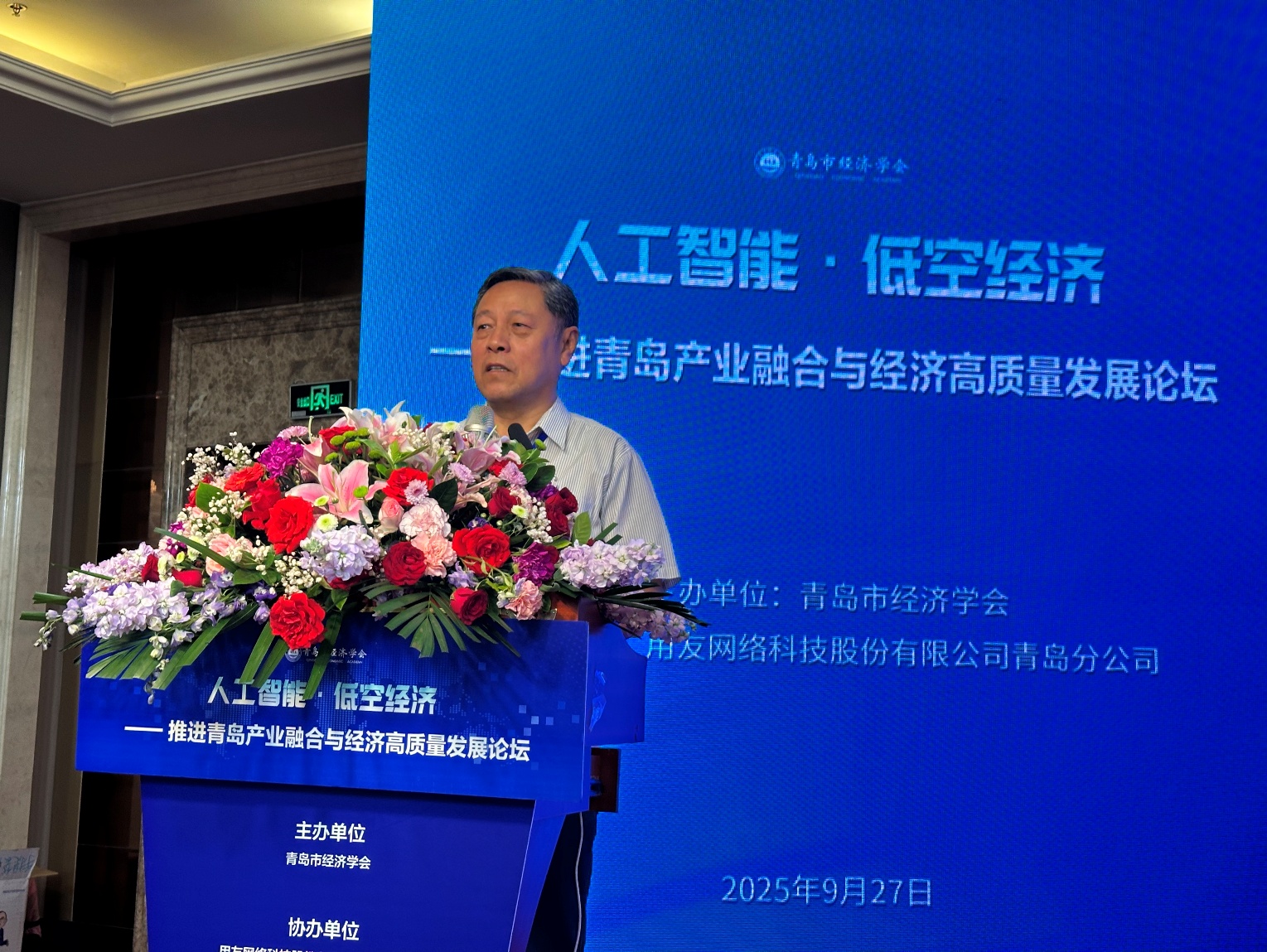 青岛日报社/观海新闻9月28日讯 9月27日下午,由青岛市经济学会主办、用友网络科技股份有限公司青岛分公司协办的“人工智能与低空经济——推进青岛产业融合与经济高质量发展论坛”在中国海洋大学学术交流中心会议厅举行。论坛以“聚智经济、赋能AI、智慧低空、产业未来”为宗旨,汇聚高校学者、行业专家与企业代表,共同探讨“人工智能+”与“低空经济+”推动青岛产业升级的新路径与新举措。