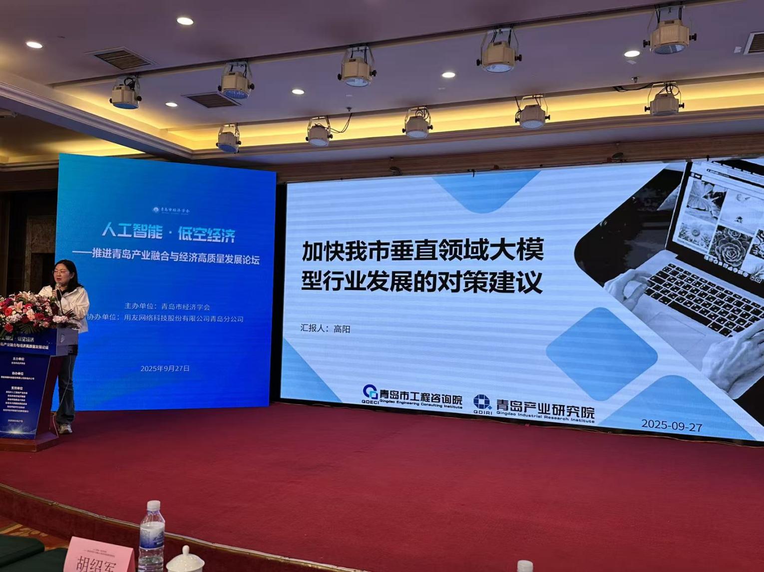 青岛市工程咨询院(青岛产业研究院)产业规划部副主任高阳,则结合产业规划与政策研究专业背景,围绕《加快我市垂直领域大模型赛道发展的对策建议》展开分析。她介绍,青岛已构建 “1+8+N” 大模型发展体系,形成 50 余个覆盖海洋、家电、智能交通等领域的垂类大模型,但仍面临创新活力不足、产品落地转化渠道不畅、供需对接断层、产业链协作薄弱等问题,建议通过搭建常态化对接平台、强化要素供给质量、深化场景开放与应用等措施,推动行业高质量发展。