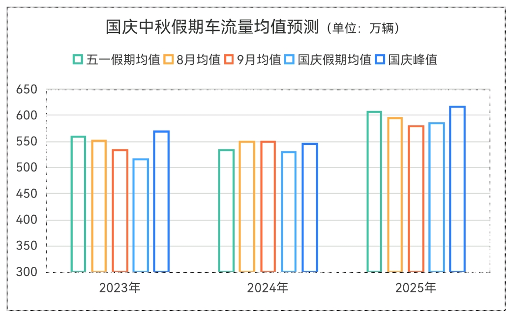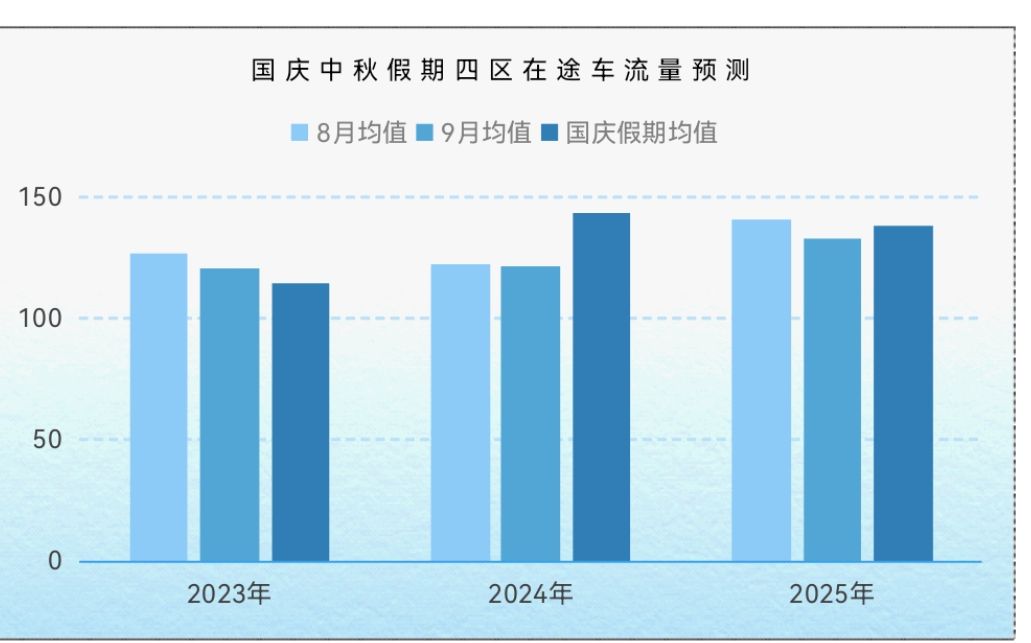 根据交通运输部门预测,假期全市对外运输客运量将达到335.3万人次,日均41.9万人次,同比2024年增长4.9%;公交地铁客运量将达到2832万人次,日均354万人次,同比2024年增长2.1%;高速公路驶入驶出车辆将达到1015.8万辆,日均127万辆,同比2024年增长3.4%。结合当前假期出游趋势和近期交通运行情况分析,预计假期全市在途车日均流量约585.5万辆,同比去年同期(529.6万辆)增长10.5%,9月30日至10月3日全市在途车流量预计呈现高位,峰值在600万辆左右。