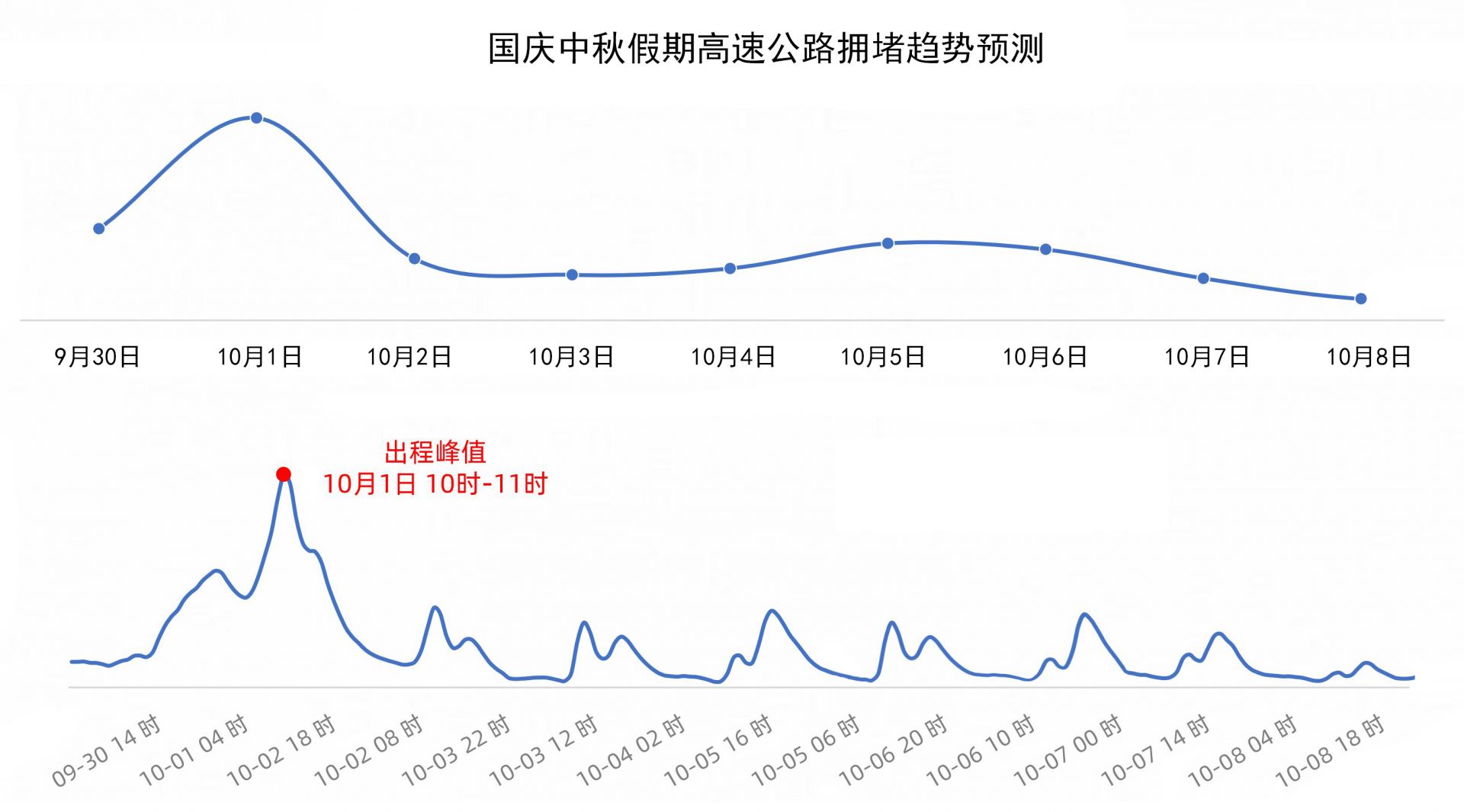 9月30日(假期前一日)15时起,出城车辆逐步增加,高速公路交通压力上升,21时至10月1日1时会有短时出行小高峰。10月1日9时-12时为出城高峰时段;返城时间较为分散,峰值出现在6日、7日每日15时-19时,8日高速路况逐渐趋于平日,而后恢复正常。提醒市民合理安排时间,错峰出行。