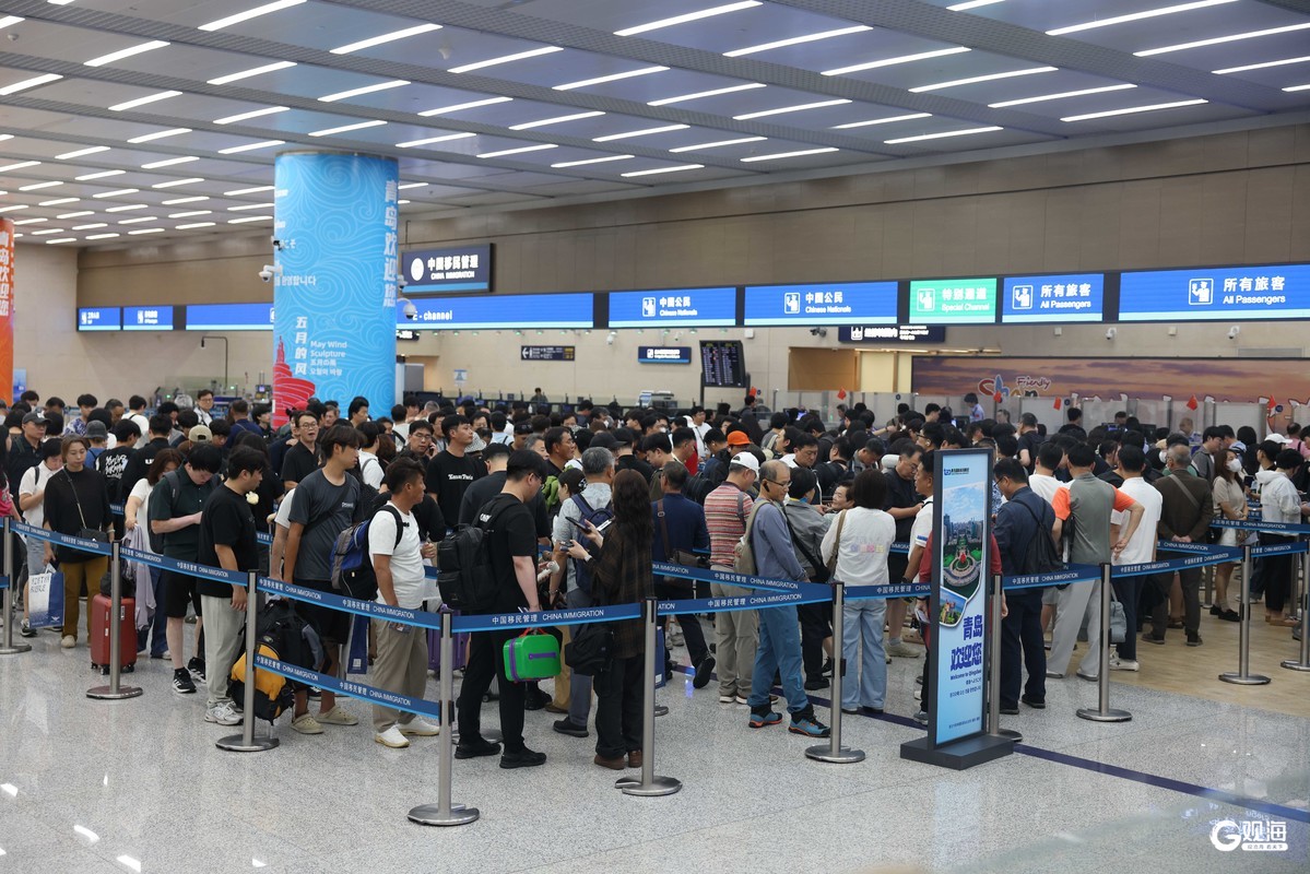 青岛日报社/观海新闻9月30日讯 临近国庆、中秋假期,青岛机场口岸“跨境游”旅游市场热度攀升。记者从山东边检总站青岛机场边检站了解到,“双节”期间,青岛机场口岸出入境人员预计达到7.8万人次,日均出入境人员9800人次,较去年同比增长约21%。
