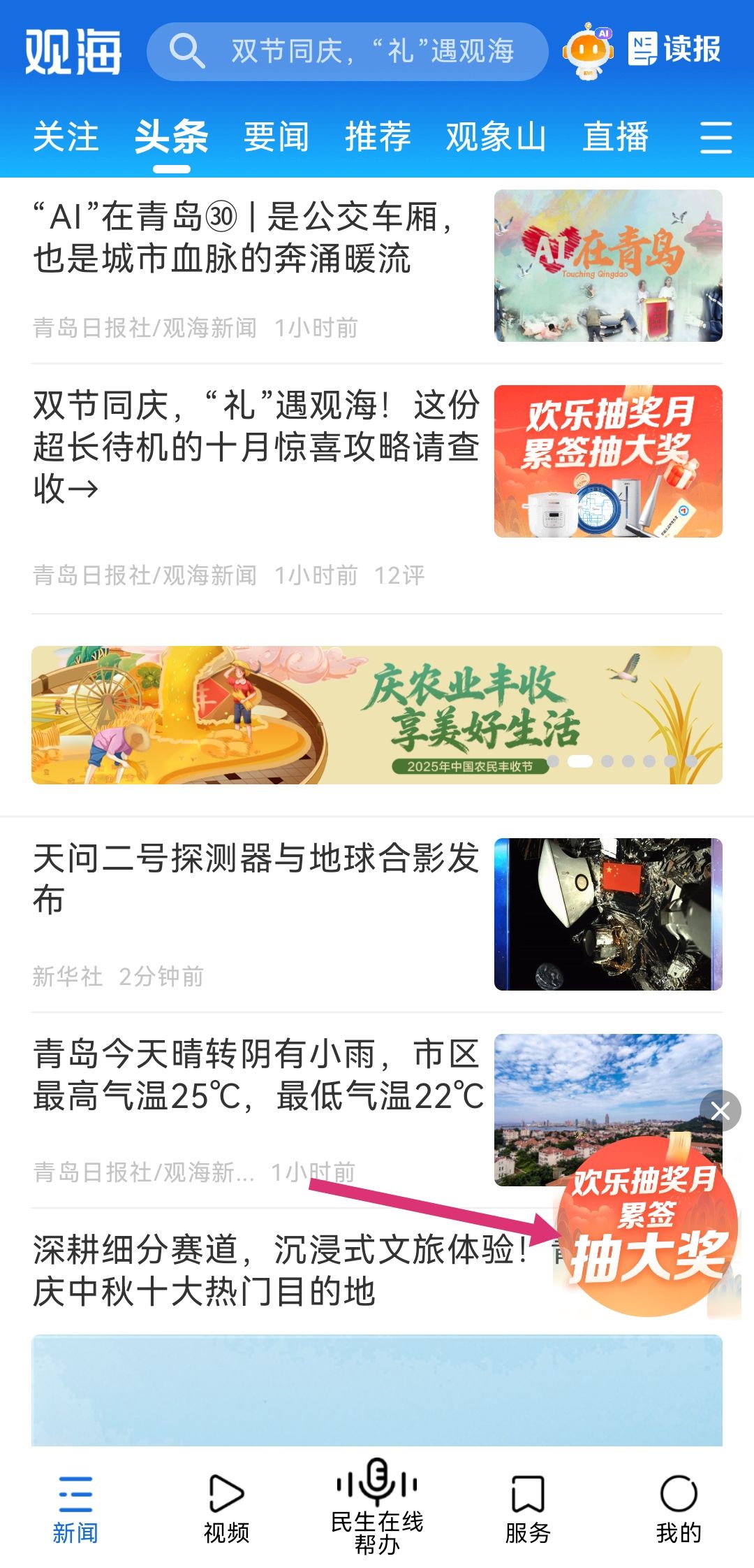 为了感谢每一位用户的坚守,我们同步启动了全员可参与的“累签抽奖活动”。这个十月,让每日打开观海新闻,成为一种充满期待的习惯。