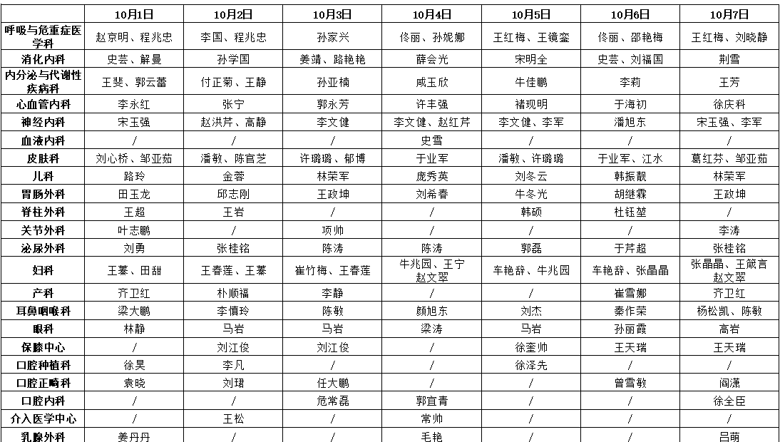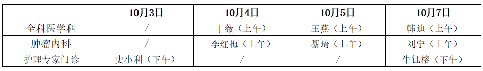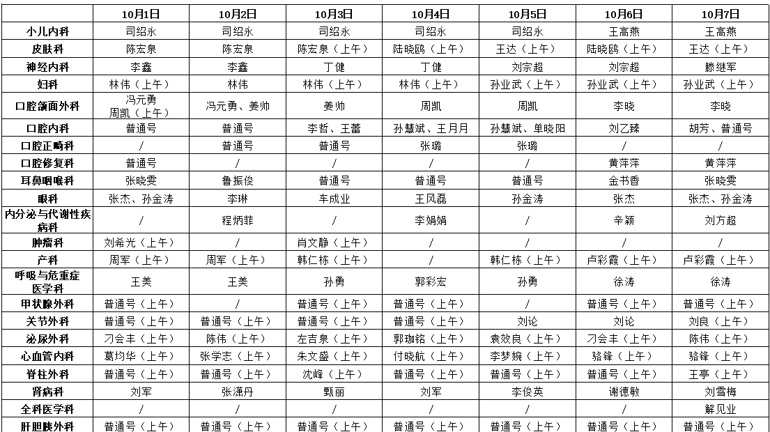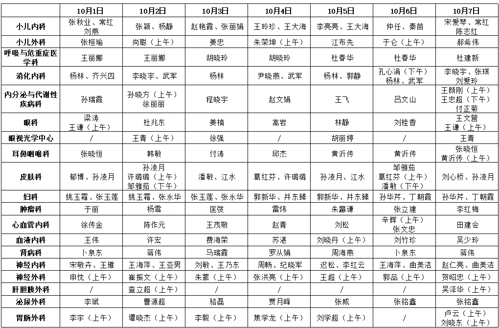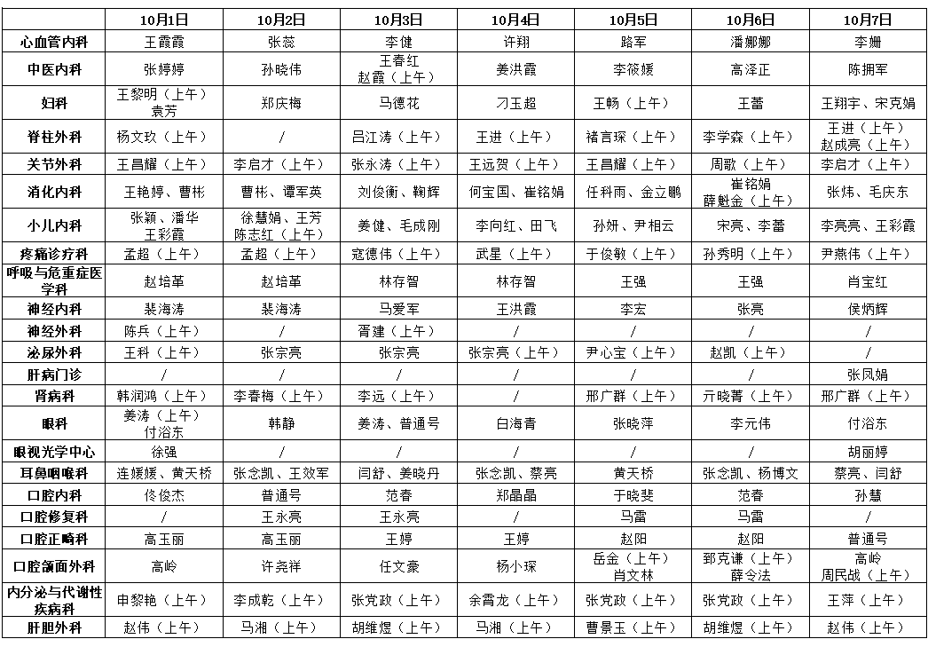 · 放射科、腹部超声科、心脏超声科时间:10月5日7:30-12:00