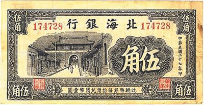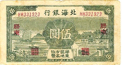 1940年8月,山东省战时工作推行委员会成立,把北海银行升为山东抗日根据地银行,北海币成为山东抗日根据地流通货币。