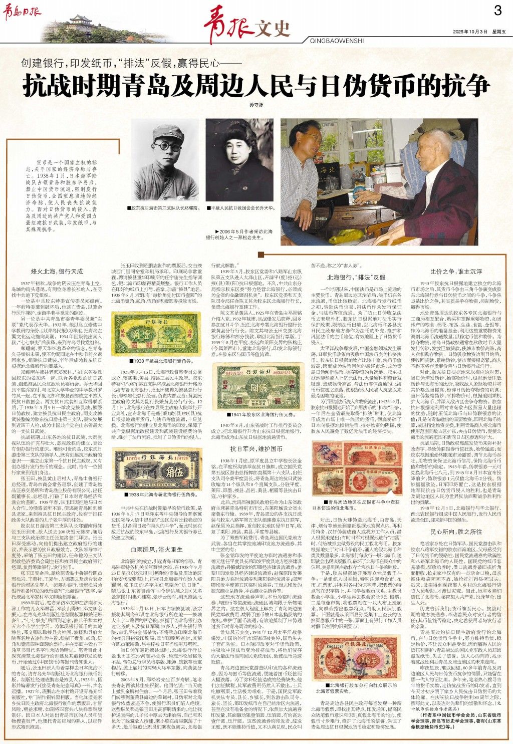 昨夜星辰,难以回望,80多年前青岛及周边地区人民与日伪货币抗争的情景,只能留在那一代人的记忆里。多年来,笔者热心搜寻当年的货币实物,走访抗战货币的印发者,直到今天才初步明了家乡人民抗击日伪货币的大体轮廓。在庆祝抗日战争胜利80周年之际,撰写此文,以表达对先辈们的崇敬和怀念。(文中纸币实物为作者藏品)