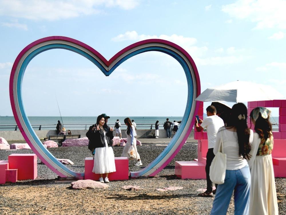 “太美了!”公园里,时常听到人们这样由衷地赞叹。站在海之恋公园的这一刻,阳光倾洒在广阔无垠的海面上,也缓缓流淌在青草绿地间。公园里,粉黛花开成海,芦苇随风摇曳,父母牵着孩子的手,年轻人互相拍照打卡。或是漫步在海边,或是坐在长椅上,或是在沙滩上撑起帐篷露营,无需多言,爱和美好,就这样流淌进时间里。