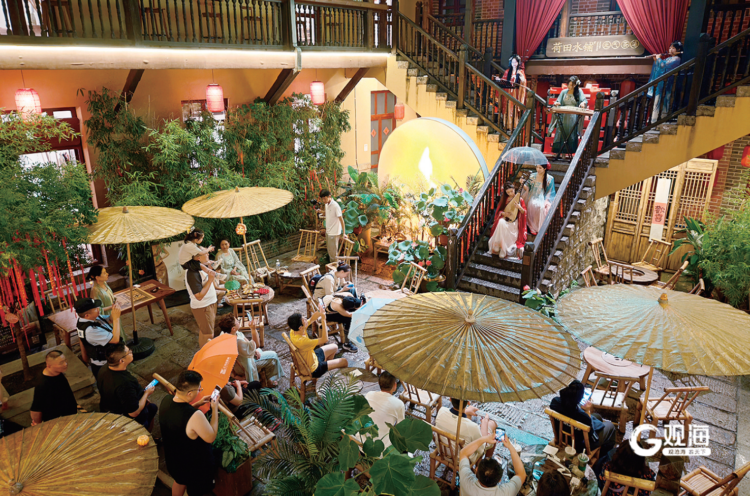 荷田水铺大鲍岛店策划的“七夕奇妙游园会”,正是社群联动线下场景的典型。该活动融合古风市集、国潮音乐会、乞巧游戏等环节,并以汉服着装为参与门槛,营造出沉浸感与归属感。“活动于周五、周六下午五点至晚上十点举行,其间3000人次进店,二次消费转化率超过50%。”荷田水铺品牌营销负责人Sissi说。