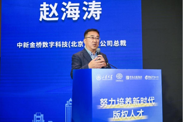 中新金桥数字科技(北京)有限公司总裁赵海涛围绕新时代数智赋能版权人才培育新模式,从产业需求视角指出当前版权人才的供给错配,呼吁建立产教融合型协同育人体系。