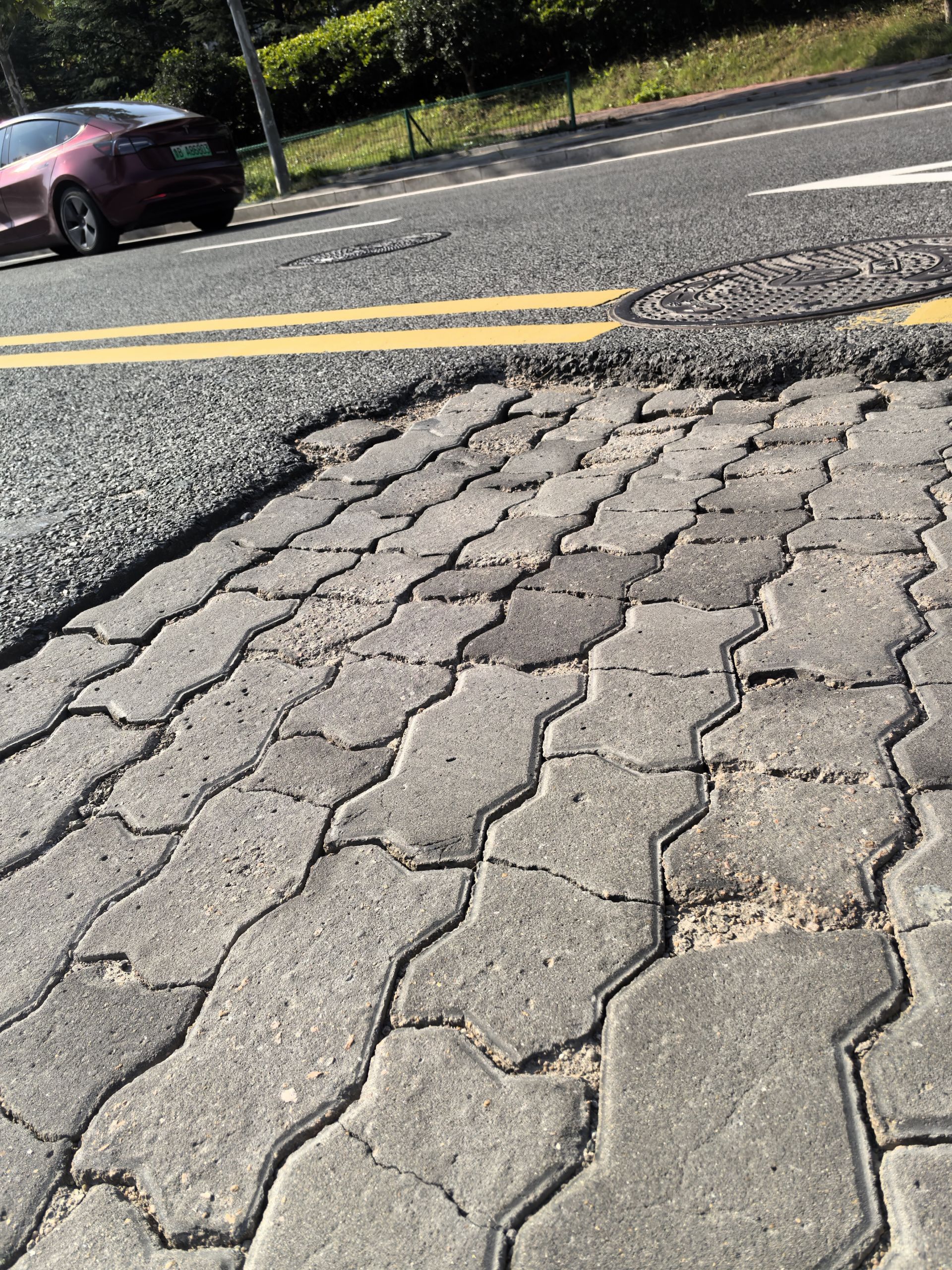 记者近日在劲松四路(齐鲁医院青岛院区劲松四路入口处以北)看到,未彻底恢复的路面共有三段,地面铺有青砖。由于青砖路面与临近的沥青路面存在高差,车辆快速驶过时,会剧烈的颠簸。一位居住在劲松四路附近的市民告诉记者,由于靠近齐鲁医院青岛院区车辆出入口,这段道路交通早晚高峰时段车流量极大,希望有关部门能够尽快处理。