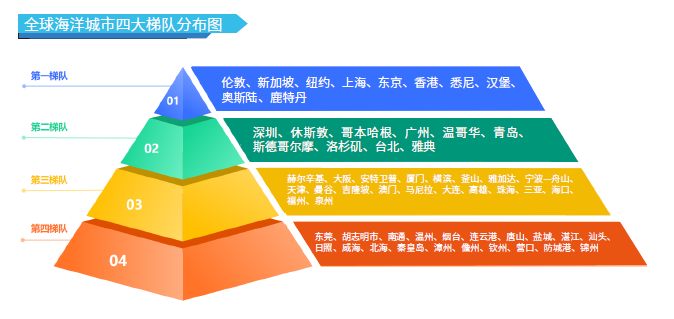 从趋势来看,随着全球船舶海工制造和航运中心东移等发展机遇的出现,亚太海洋经济圈城市集体崛起,其中,中国城市表现尤为活跃。上海、香港、青岛、深圳等城市凭借在科技创新、经贸活力等领域的优势,已成为全球海洋竞争中不可忽视的“中国力量”。