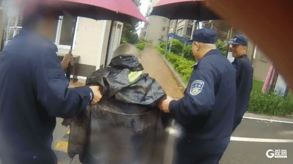 八旬老人雨中摔倒,民警救助找到家人