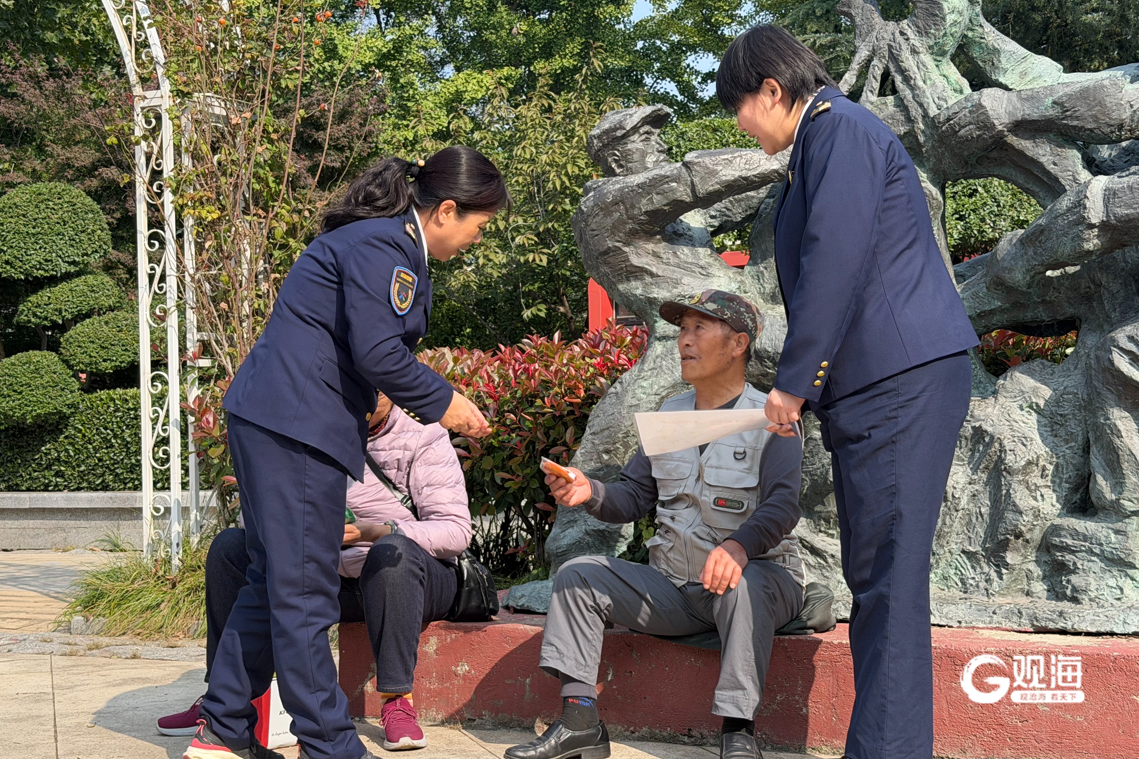 工作人员耐心地为老人们讲解攻略中的内容,解答了关于登山路线、景点特色等方面的疑问,并热情地引导他们根据自身情况选择合适的游览路线。拿到攻略的老人们纷纷表示,这份攻略非常实用,不仅让他们对公园的景点有了更清晰的了解,也让他们能够更安心地规划登山行程,捕捉秋日里的美好瞬间。“有了这份攻略,我们登山心里更有底了,感谢市北巴士的工作人员这么贴心!”一位正在仔细阅读攻略的张大爷笑着说道。