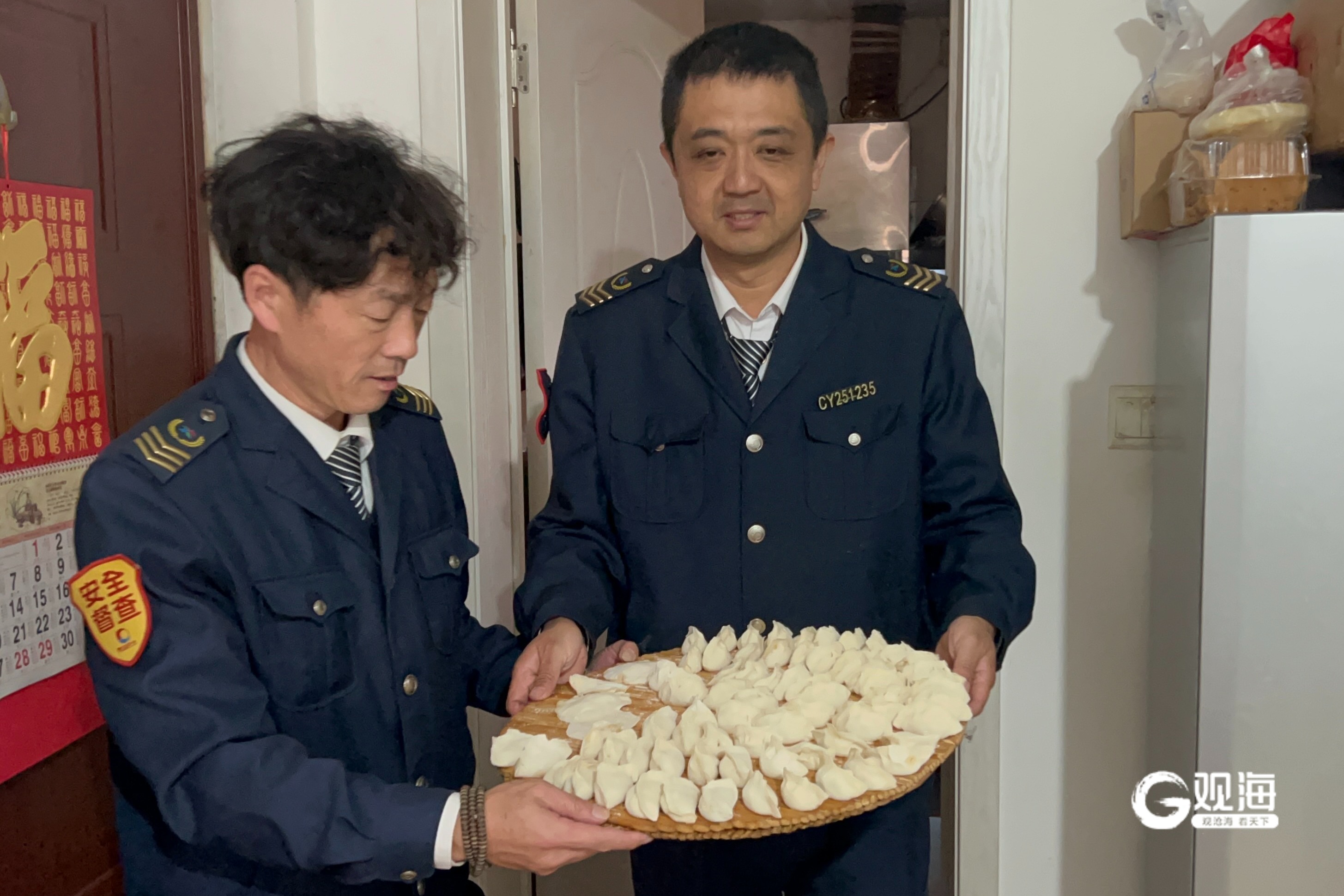 志愿者王振雷则走进厨房,挽起袖子准备包饺子——和面、调馅、擀皮。大家默契配合,不一会儿,一个个饱满圆润的饺子便整齐地摆放在盖帘上。随着锅里的水沸腾,热腾腾的饺子被端上桌,志愿者们与徐大妈围坐在一起,共同品尝亲手包的饺子,屋内欢声笑语不断,暖意融融。徐大妈笑着说:“有你们来陪我过节,比啥都强,这饺子吃着心里特别暖!”