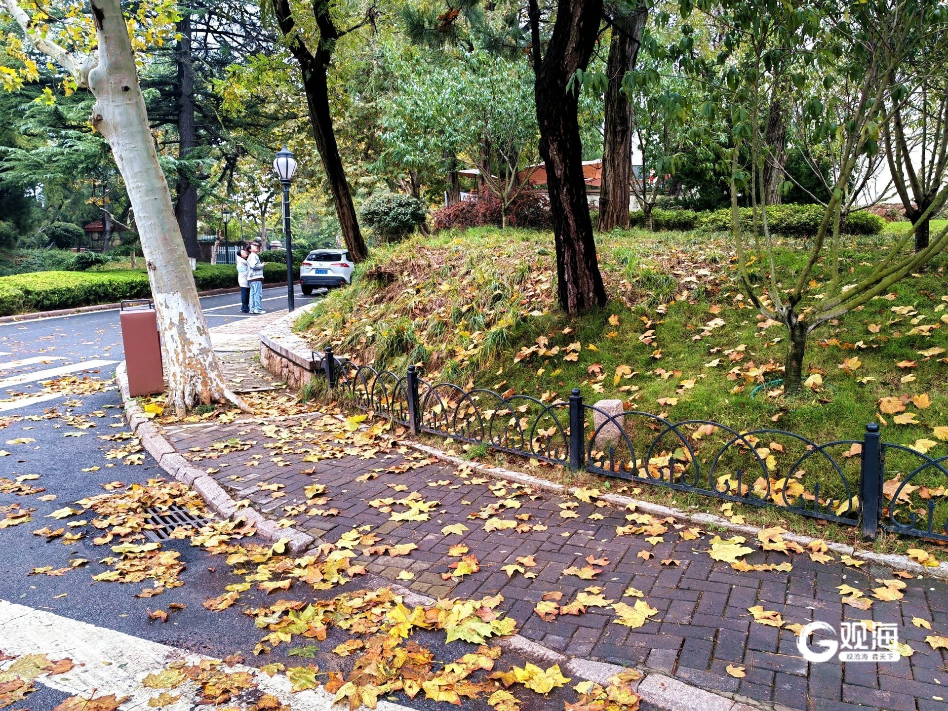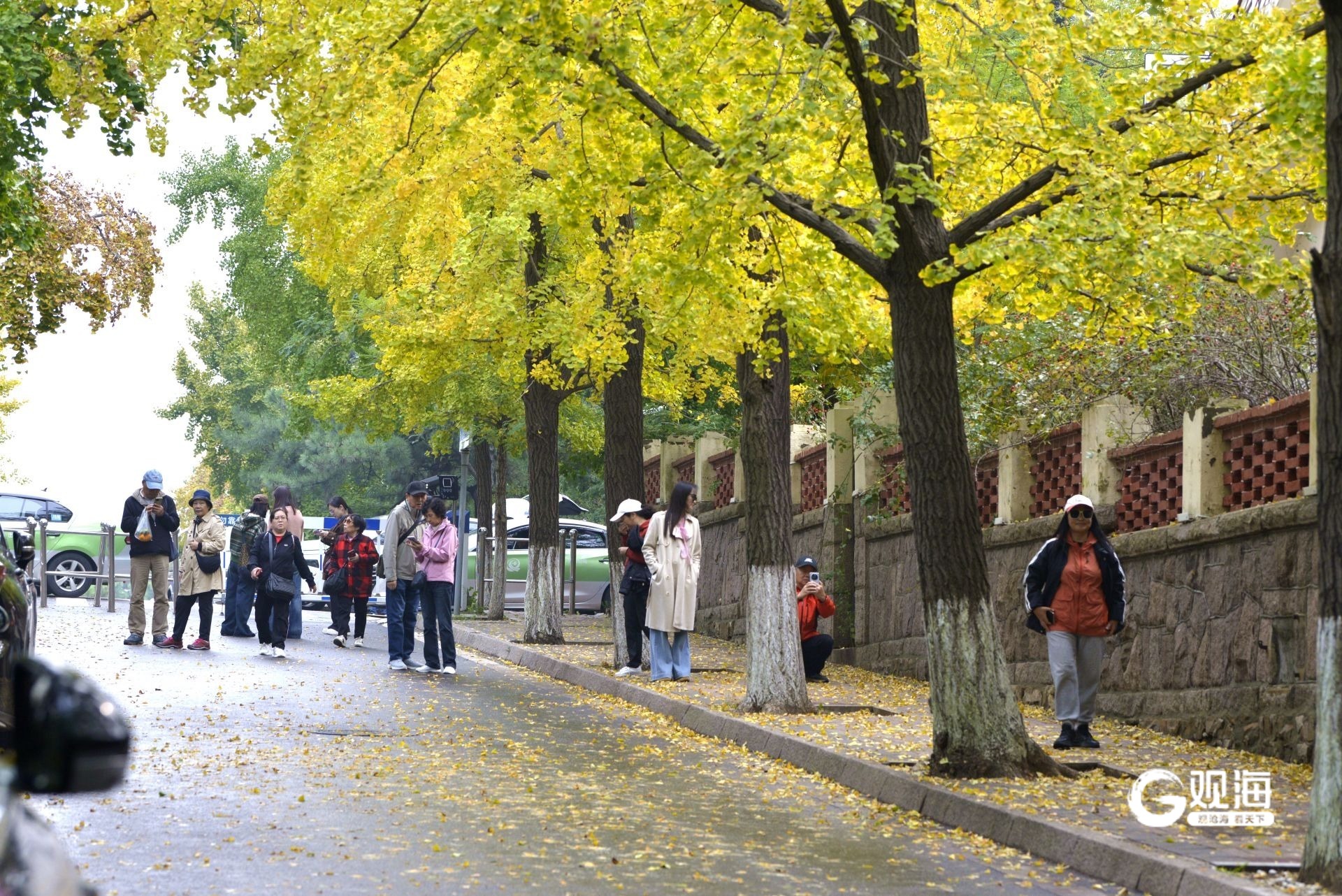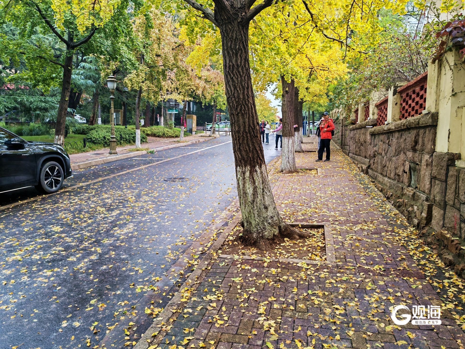 - 一场秋雨过后,八大关浸在清润秋意中。道路两侧的树木褪去葱茏,满枝金黄缀着雨珠,风过处,黄叶簌簌飘落,铺就松软“金毯” ,成为城市里最动人的秋日打卡地。(青岛日报/观海新闻记者 于滈 摄影报道)