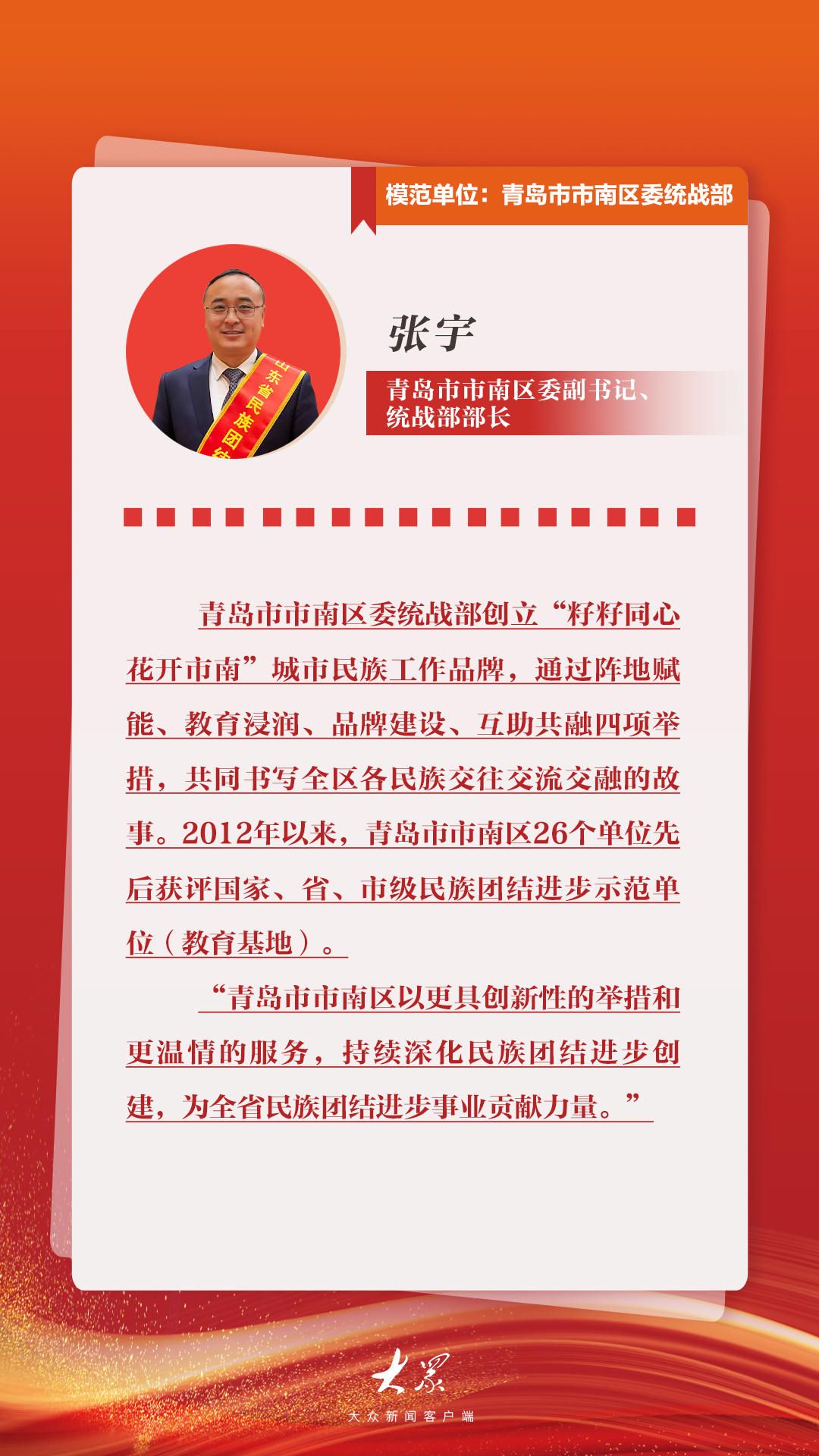 10月31日,一批为齐鲁大地民族团结事业作出突出贡献的山东省民族团结进步模范集体和模范个人受到表彰,他们以实际行动谱写了“中华民族一家亲,同心共筑中国梦”的生动篇章。让我们一起了解2个模范集体和4位模范个人用真诚与行动书写的团结故事,汲取榜样的力量。 (大众新闻记者 董方舟 设计 尹亚琪) 责任编辑:刘聪聪 0