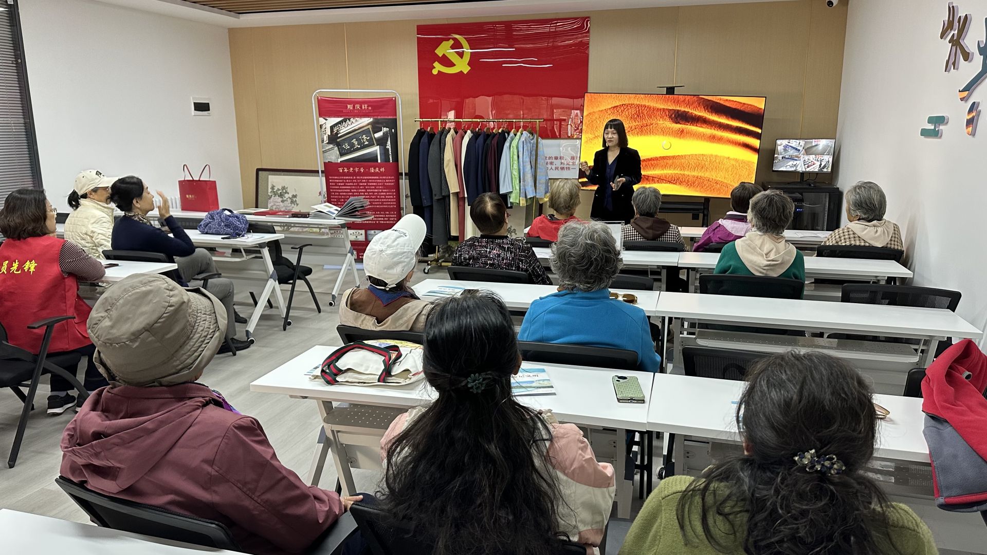 活动现场,隆庆祥为社区居民细致讲解了四季型人适配色彩,如春季型适合明亮清新的粉绿、鹅黄,冬季型适配高饱和度的正红、黑色等。讲解过程中,居民认真聆听、拍照记录,积极提问互动。