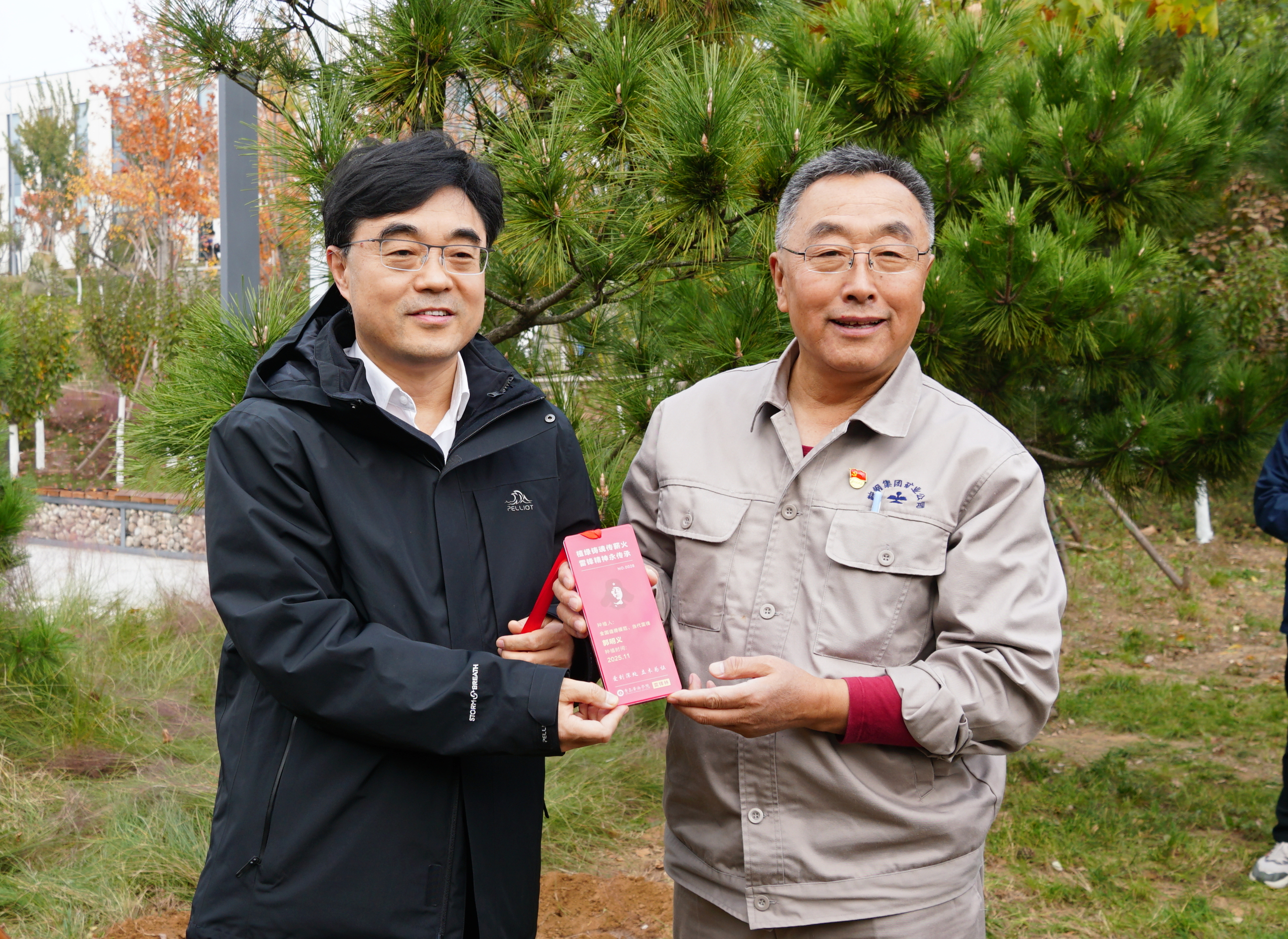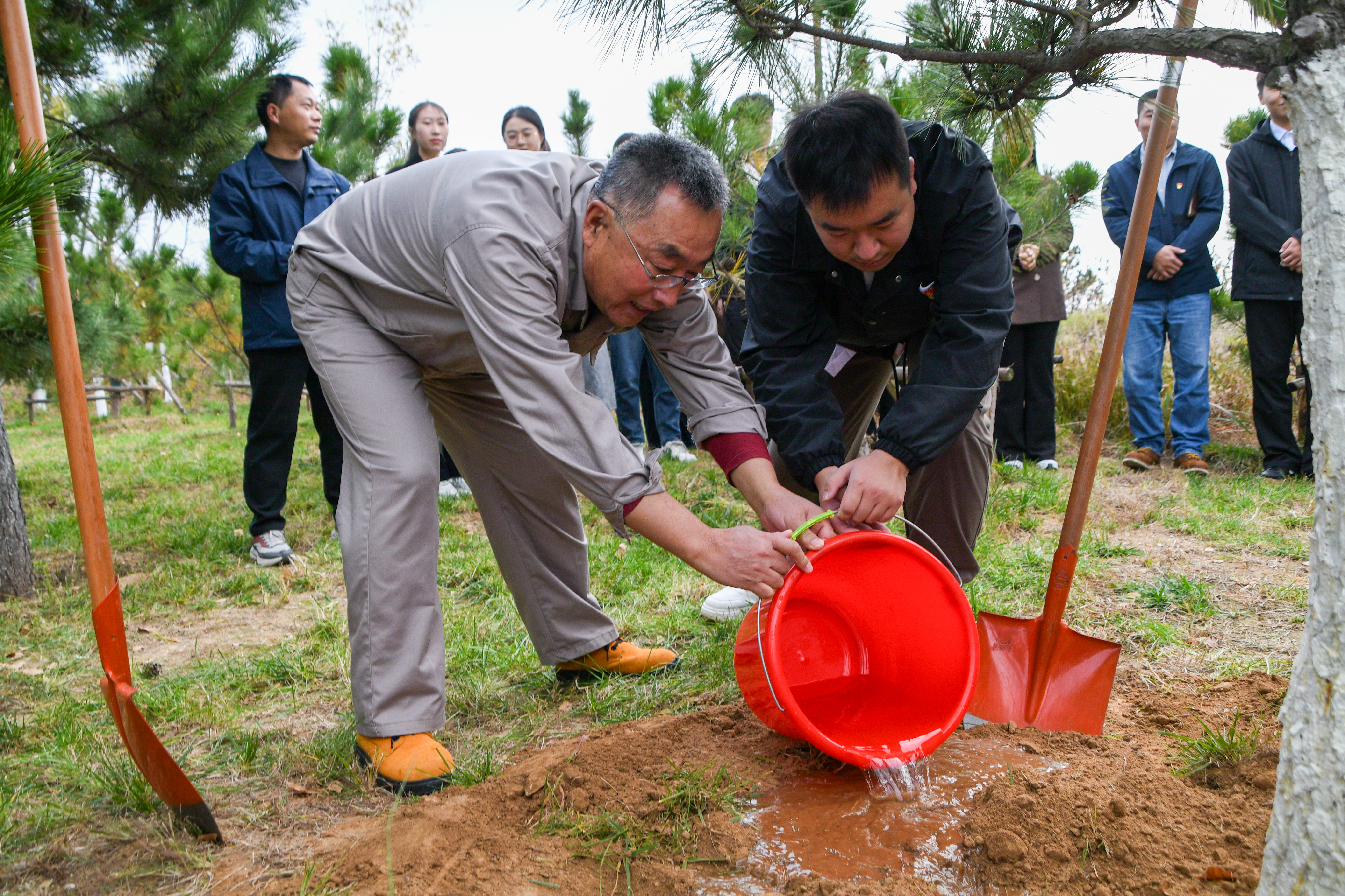 在青岛黄海学院雷锋林,郭明义与青岛黄海学院董事长刘常青、师生代表一同挥锹铲土、浇水培植。“今天我们一起浇灌这棵小树,就像我们培养了一批又一批学生去建设我们的祖国。我们要栽更多的树,让天更蓝、水更绿,要培养一代又一代的学生,为我们的国家去奋斗。”刘常青亲手将印有自己姓名的铭牌悬挂在树苗上,并勉励在场的每一名学子努力学习,成长为新时代的雷锋。