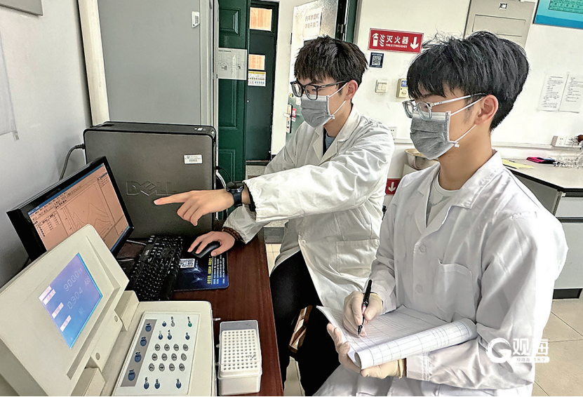 “食菌速检——新一代食源性致病菌三模式快检仪”项目团队成员正在做实验。