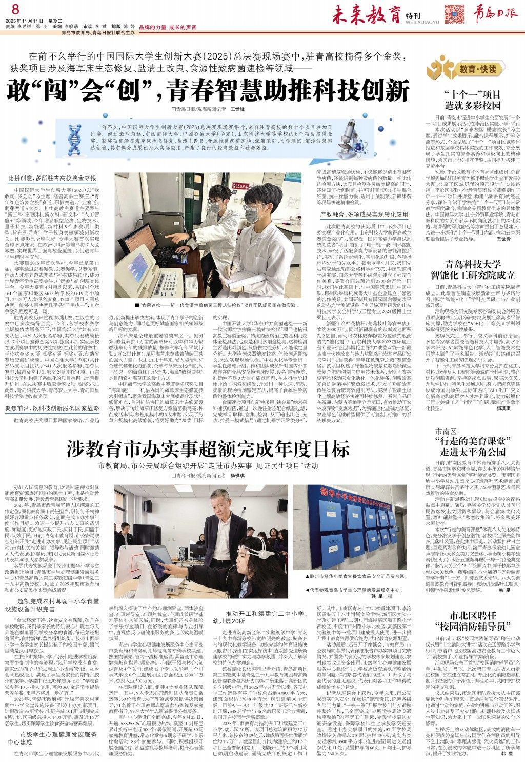 在前不久举行的中国国际大学生创新大赛(2025)总决赛现场赛中,驻青高校摘得多个金奖,获奖项目涉及海草床生态修复、盐渍土改良、食源性致病菌速检等领域——
