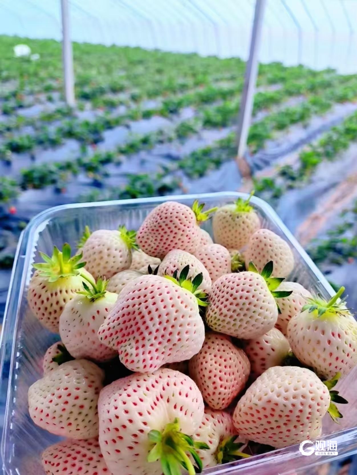 白草莓产量略高于红草莓。乐果园家庭农场供图