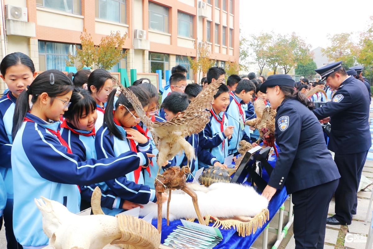 青岛日报社/观海新闻11月12日讯 今天上午,2025年山东省第34届野生动物保护宣传月主场活动暨全省公安机关“平安原野”专项行动集中宣传活动在青岛城阳区春阳路小学举行。本次活动以“羽你同行,共建美丽山东”为主题,由山东省公安厅、山东省自然资源厅、青岛市人民政府主办,国家林业和草原局驻合肥专员办事处指导,青岛市公安局、青岛市园林和林业局、城阳区人民政府承办,青岛市园林和林业综合服务中心、青岛市公安局城阳分局等协办,省市区政府部门、野生动植物保护协会代表及师生近500人共同参与。