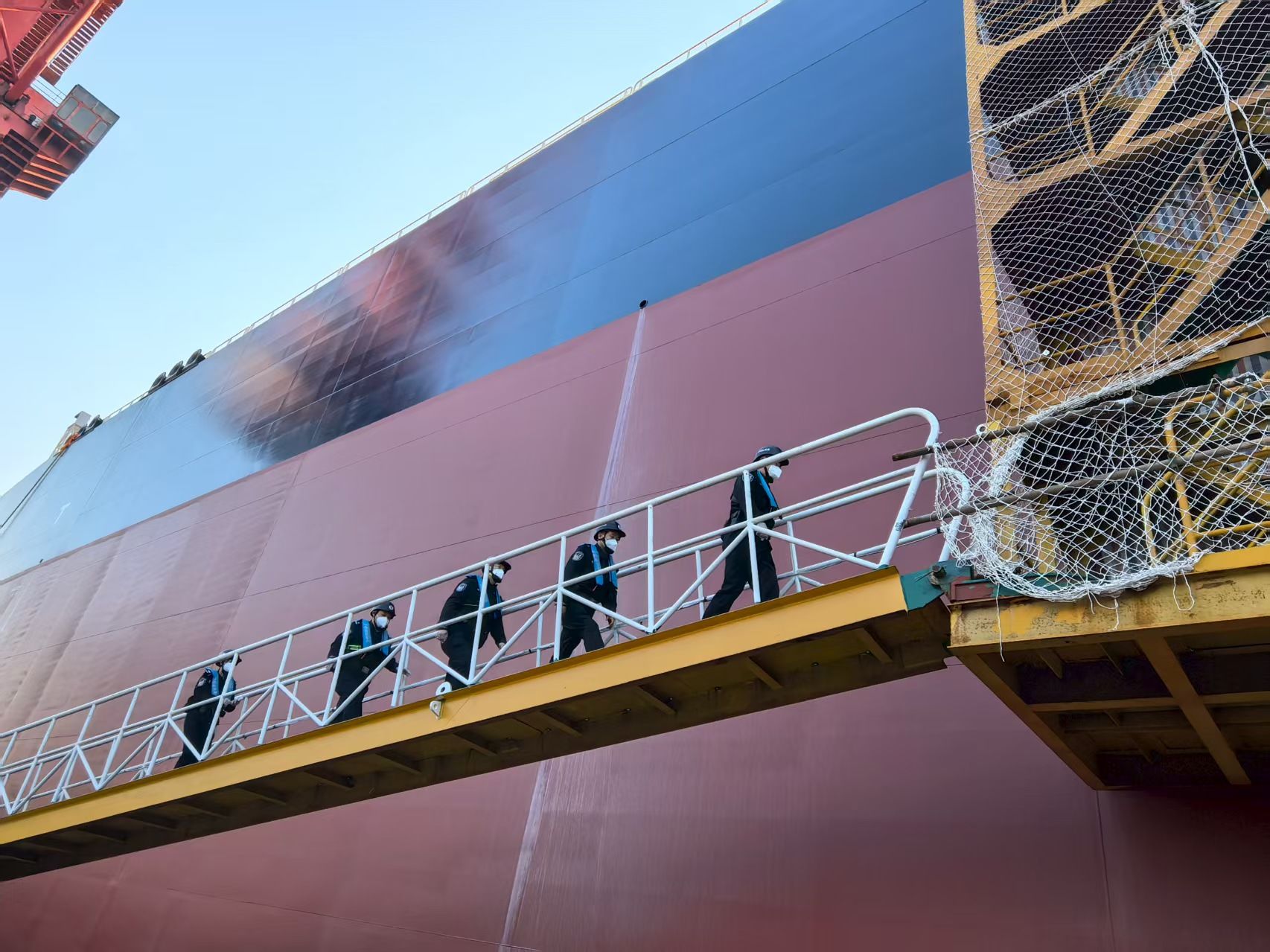 考虑到新造船交付流程多、难度大、要求高等实际,黄岛边检站通过“主动靠前+精准对接”模式,与北海造船、船舶代理深度联动,全面掌握船舶建造进度、船员配置和出口计划,量身定制“一船一策”精细化查验举措。同时,联合海关、海事等联检单位构建信息共享体系,实施“一次登轮、集中查验、同步放行”的高效通关模式,最大限度缩短手续办理和通关时间,为“国之重器”走向深蓝提供边检保障。