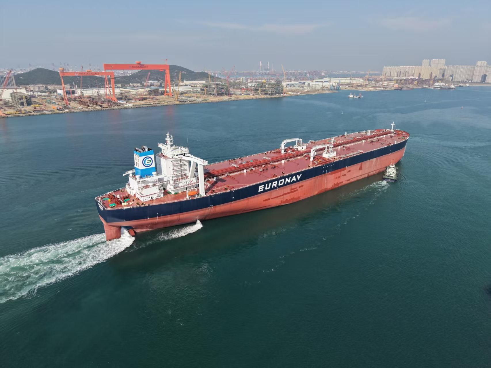 “拓疆”轮是山东省内建造的首艘氨预留超大型油轮,交付比利时CMB集团后将承担国际原油运输任务。作为“中国制造”的标杆项目,该轮总长339.5米、型宽60米、型深30.3米、载重31.9万吨,融合绿色环保、节能安全等先进设计理念,标志着我国大型船舶建造技术取得新突破。