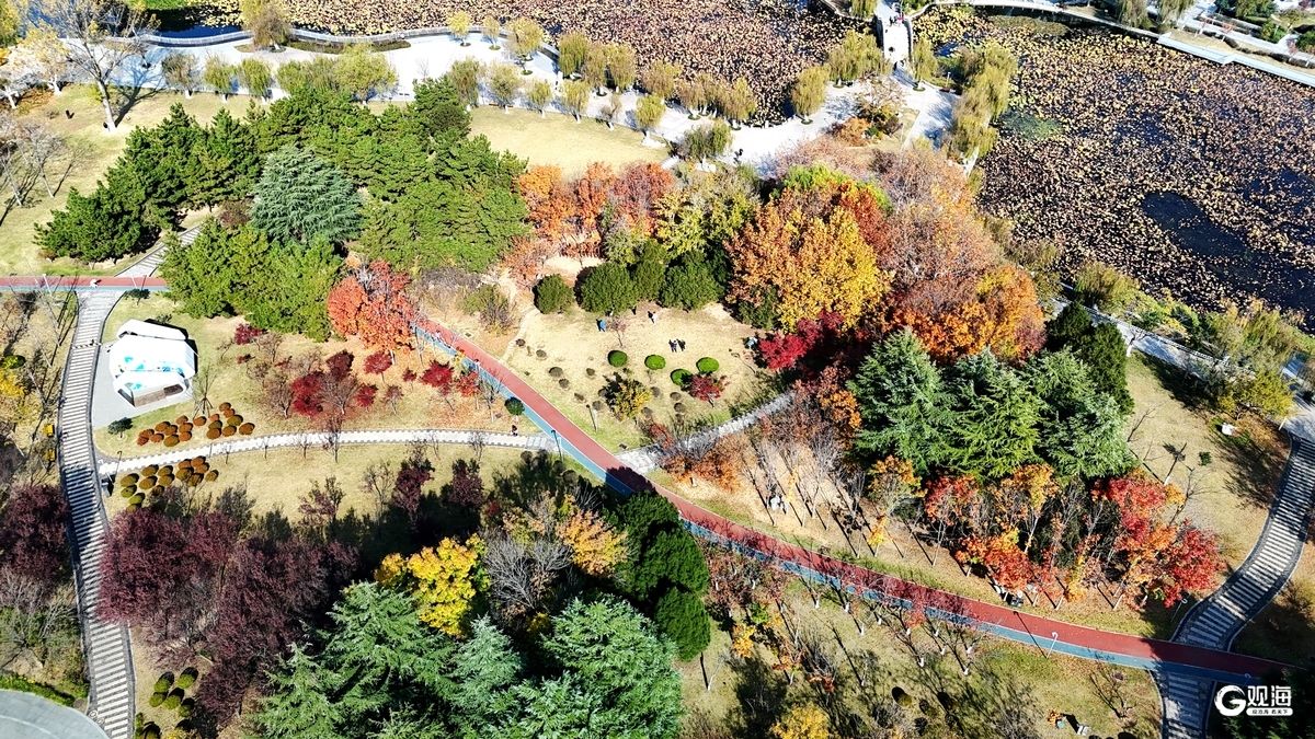 青岛日报社/观海新闻11月13日讯 秋末冬初的青岛,美得诱人。位于青岛西海岸新区的双珠公园,黄的透亮、红的热烈、绿的苍翠,五彩秋叶层层叠叠,在阳光下流转着斑斓光泽。湖面荷叶虽褪去盛夏繁绿,残叶疏影却别有韵味,与岸边彩林相映成趣,勾勒出清润雅致的秋景。