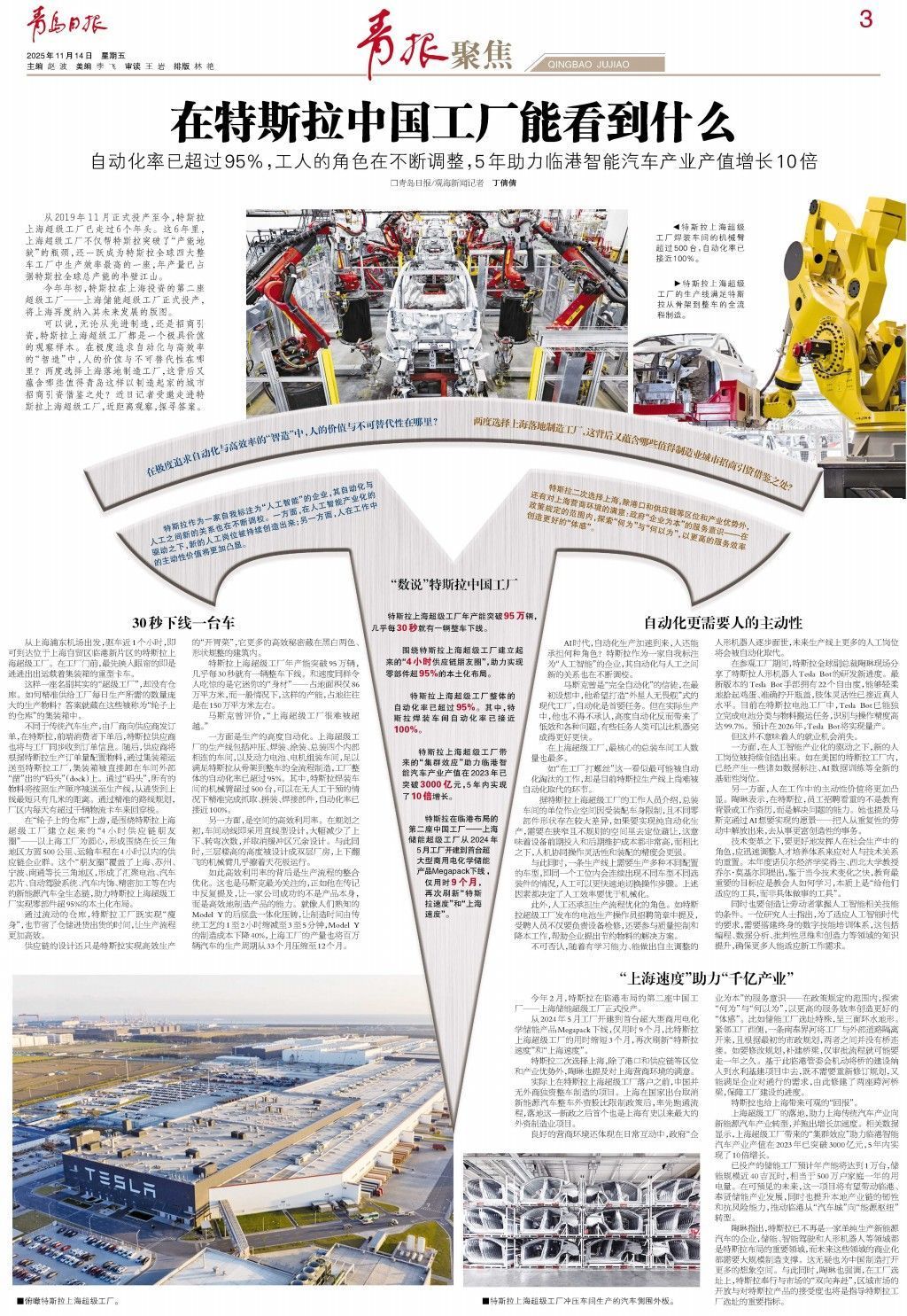 可以说,无论从先进制造,还是招商引资,特斯拉上海超级工厂都是一个极具价值的观察样本。在极度追求自动化与高效率的“智造”中,人的价值与不可替代性在哪里?两度选择上海落地制造工厂,这背后又蕴含哪些值得青岛这样以制造起家的城市招商引资借鉴之处?近日记者受邀走进特斯拉上海超级工厂,近距离观察,探寻答案。