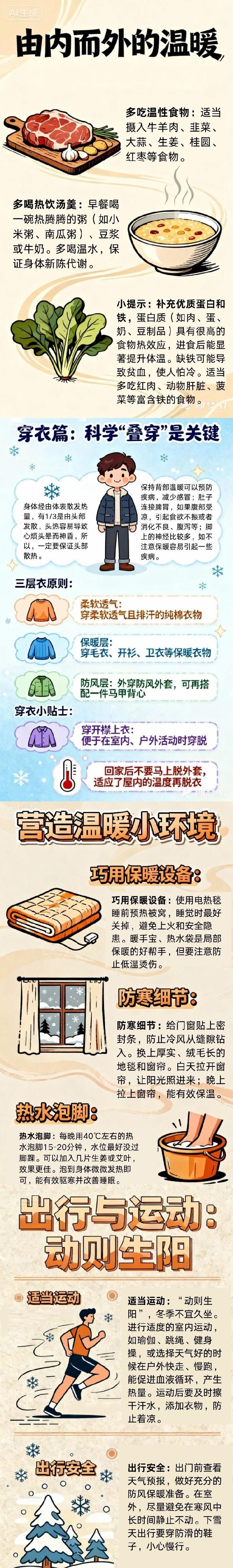 本周末,新一股强冷空气将来袭。这股冷空气将自西向东影响我国大部地区。气温将普遍转为较常年同期偏低,大片地区气温会创下半年来新低。17日下午到18日白天,受较强冷空气影响,山东预计将迎来今年入冬后的第一场雪。衣柜里的厚装可以穿起来喽!现在为大家送上保暖小知识,让你把保暖正式提上日程! (海报新闻编辑 李嘉 综合新华网、光明网、大众日报等 图片由AI生成) 责任编辑:吕靖雯 0