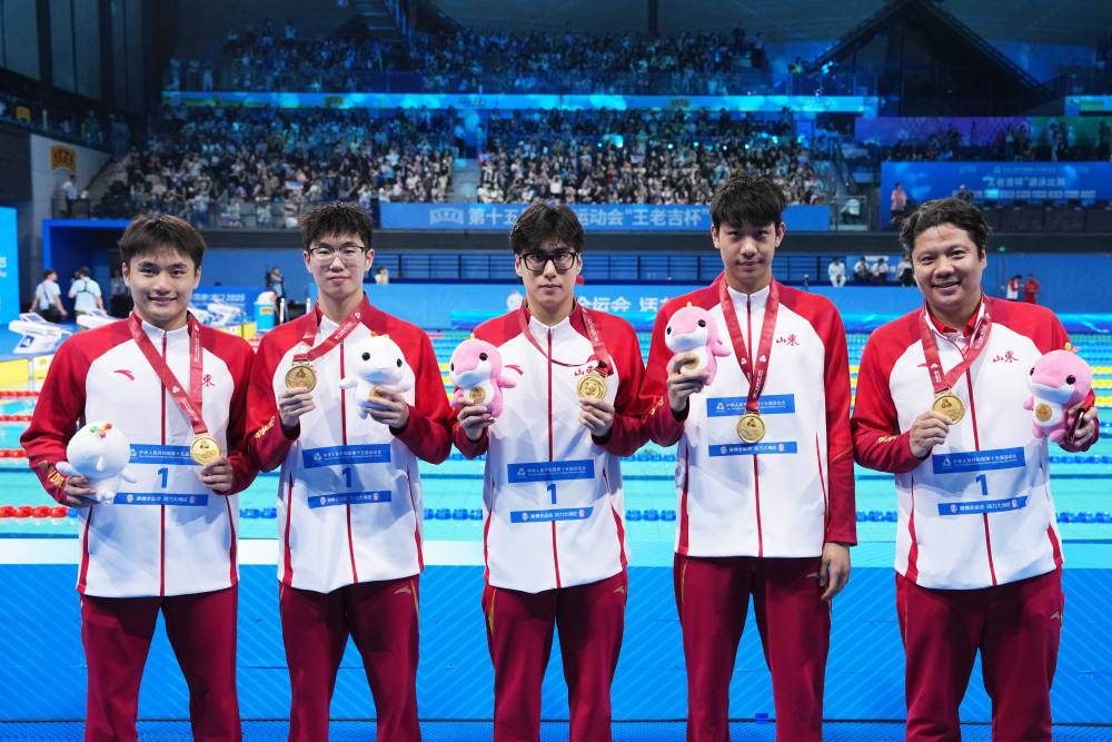 15日,男子4X200米自由泳接力决赛中,山东队和浙江队展开激烈竞争。刘培鑫、赵一朴、李易峰、张展硕组成的山东队,四人都是2005年之后出生;浙江队由费立纬、孙杨、潘展乐、汪顺组成,其中有三位奥运冠军、一位亚运冠军。但山东大男孩们以7分05秒36笑到了最后。张展硕也获得了个人本届全运会的第四金。