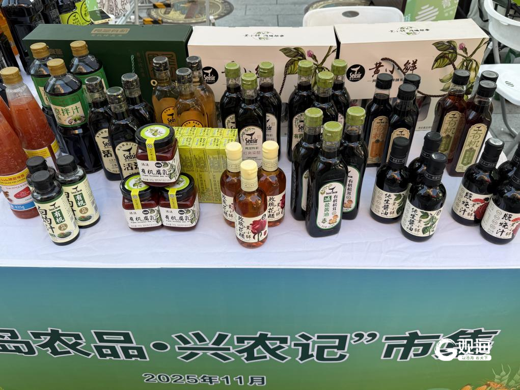 刚刚采摘的新鲜地瓜、今秋新收获的小米、五谷土鸡蛋、纯天然蜂蜜……这些带着“土味儿”的农产品深受市民喜爱。同时,在品质生活不断提升的当下,在本次市集上从有机蔬菜到纯粮酿造酱油,再到养生茶和艾草制品等带着“匠心”的特色农产品也广受欢迎。“这是咱‘幸福老家’的黄瓜,不用洗就能直接啃!我们的蔬菜从播种到收获全流程可见,都是当天从基地直供到餐桌。” 摊主王彬卫告诉记者。同样讲究自然安全的还有食圣99鲜酱油,“这款酱油采用非转基因脱脂大豆和小麦酿造而成,酱香醇厚,鲜味十足。”食圣99鲜酱油分公司负责人苗秋兰介绍道。这些产品用“绿色品质”守护市民健康,用“匠心”唤醒市民温馨乡情,升级青岛农品“绿色品质 世界共享”的品牌内涵。