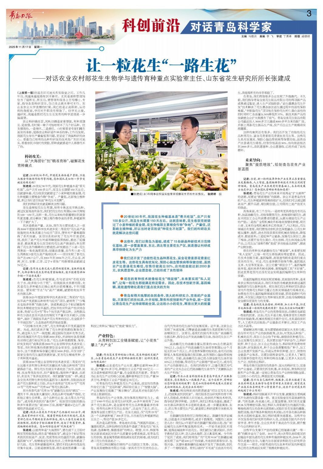 ——对话农业农村部花生生物学与遗传育种重点实验室主任、山东省花生研究所所长张建成