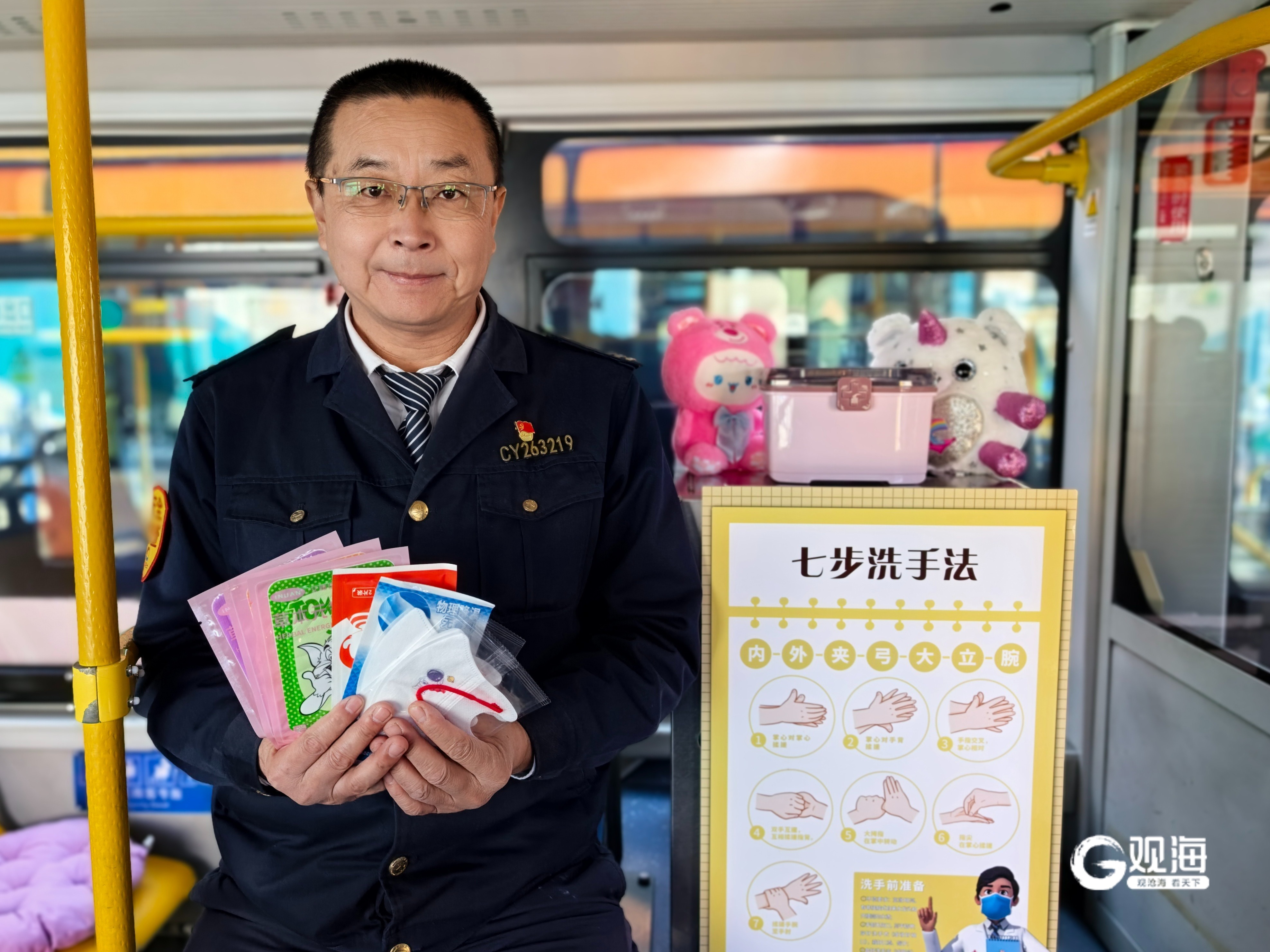 此外,车厢内特意配备了实用的“冬季健康便民包”,成为守护乘客健康的“移动驿站”。便民箱内整齐摆放着一次性口罩、消毒湿巾、体温枪等用品,以及创可贴、暖宝宝等应急物品,能够及时为有需要的乘客提供帮助。考虑到带孩子就医的家长群体,驾驶员杨绣武特意补充了儿童专用口罩和小玩具,既缓解孩子就医的紧张情绪,也为家长减轻了照料负担。