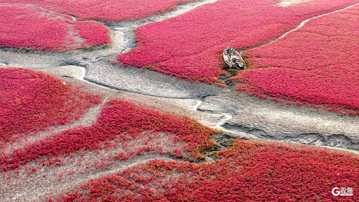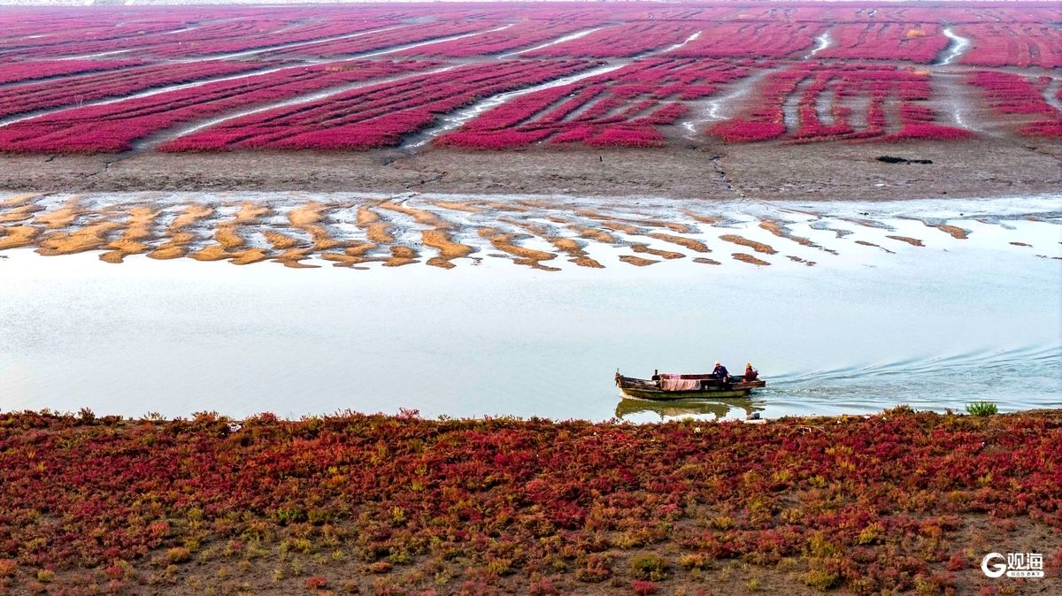 红海滩迎来最佳观赏季,生态画卷斑斓迷人 2025-11-20 10:21 青岛日报社/观海新闻 近日,青岛西海岸新区红石崖街道依偎的胶州湾湿地红海滩,迎来了一年中的最佳观赏期。退潮后,绵延的碱蓬草宛如片片红毯,色彩靓丽,与深褐色的潮沟和入海的河水一起,编织出一幅幅色彩斑斓的生态画卷。(观海特约摄影师 韩加君 | 责任编辑 王亚楠 樊蓉) 近年来,当地持续加大保护力度,使得红海滩生态环境持续好转,生物多样性得到了有效恢复。 游客沉醉在这秋日限定的美景中,流连忘返。