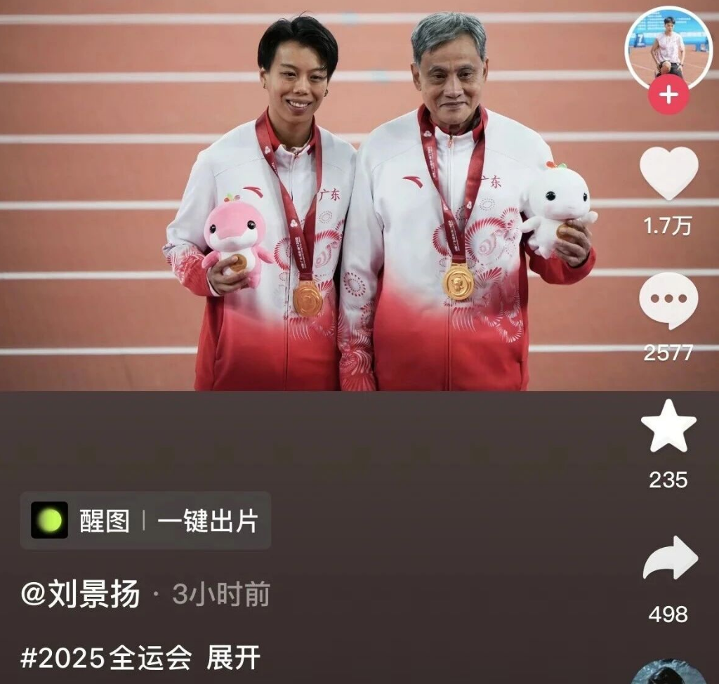 刘景扬对此回应表示,自己一直跟的是三级跳的麦国强教练,全运会金牌离不开麦导的悉心教导。