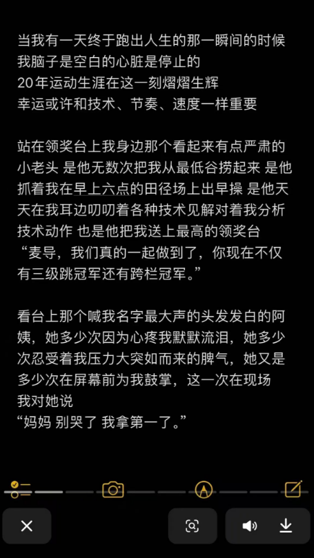 “麦导,我们真的一起做到了,你现在不仅有三级跳冠军还有跨栏冠军。”