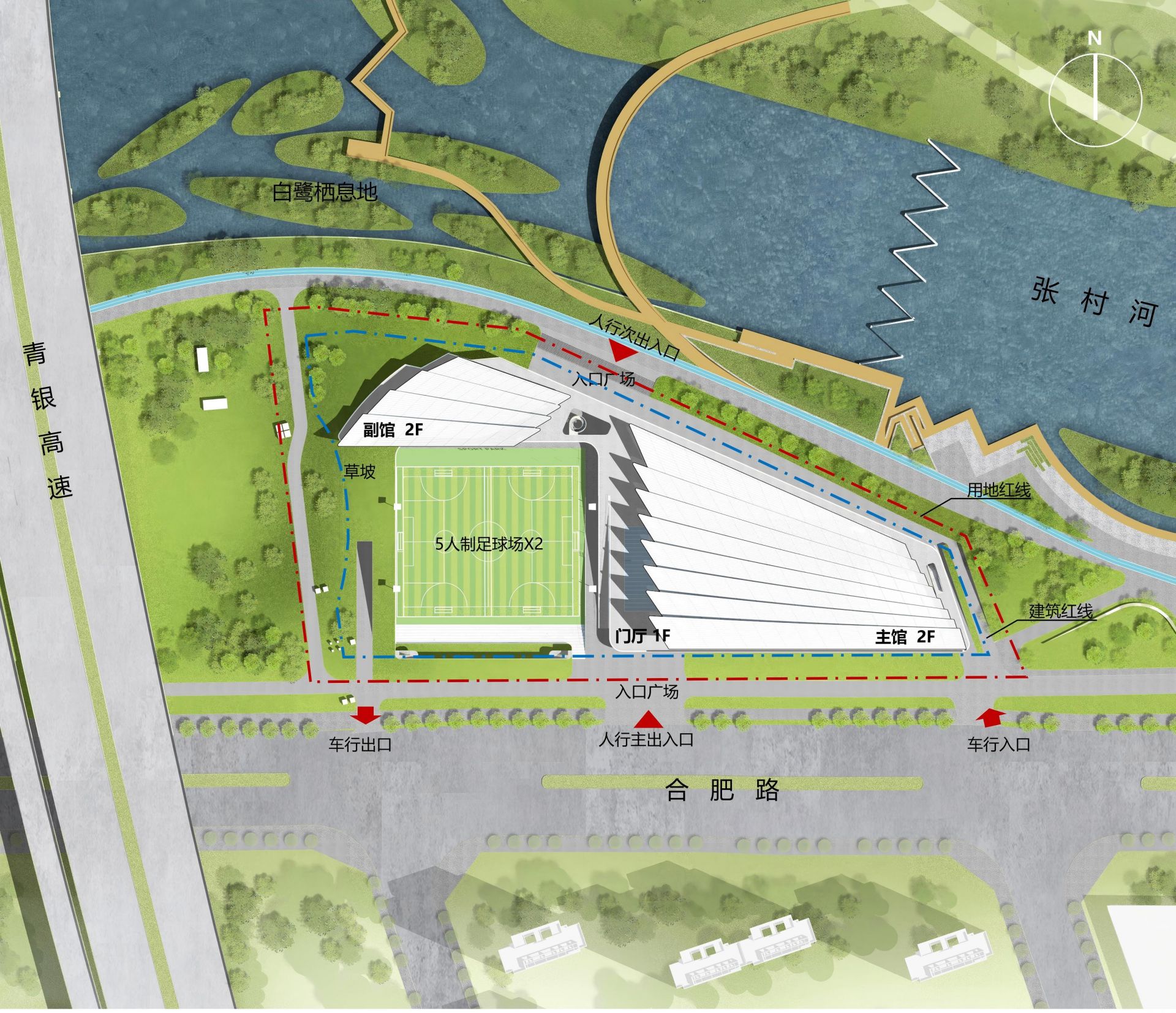 规划方案显示,项目规划用地18343.4平方米,规划总建筑面积22796.79平方米。建设内容室内包括篮球场、羽毛球场、乒乓球场、游泳池、健身房等,室外包括足球场、观鸟平台等。此外,还配套地下停车位184个。
